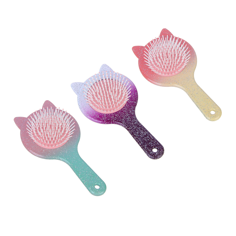 Расческа массажная 19 см создана для бережного ухода за волосами любого типа. Легкая, мягкая. Массажное воздействие на кожу — важный этап ухода. Применение щетки улучшает снабжение тканей питательными веществами, кислородов и влагой, ускоряет естественное обновление покровов и рост крепких волос. Нежные кошачьи ушки придают расческе игривый и привлекательный вид. Благодаря эргономичной форме и удобной ручке, расческа легко лежит в руке и позволяет бережно привести в порядок ваши волосы. Компактный размер позволяет брать расческу с собой в сумке, чтобы ваша прическа всегда была безупречной.
