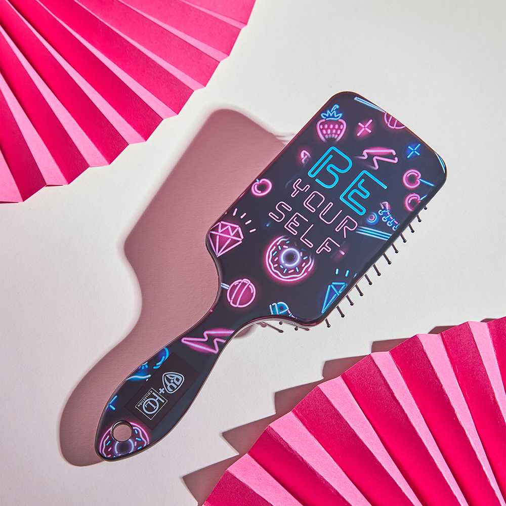 Широкая массажная расческа для идеальной укладки деликатно расчешет широкие пряди, а яркий дизайн с трендовыми принтами поднимет настроение! Уникальные зубчики бережно прочесывают любые типы волос, как прямые, так и вьющиеся, вне зависимости от длины. Легкий массаж кожи головы поможет улучшить кровообращение и "разбудить" спящие волосяные луковицы. Размер 21,7х6,8 см.