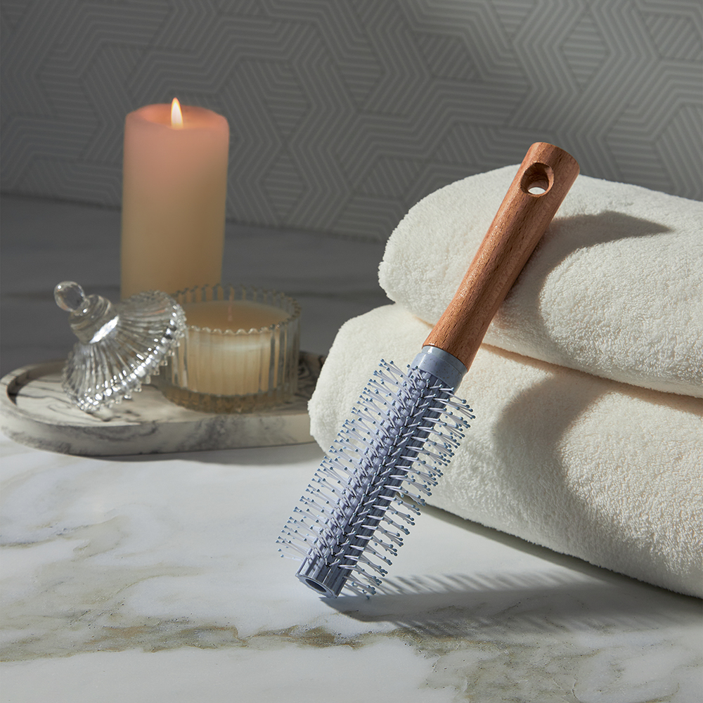 Классическая массажная расческа в нежном пастельном оттенке, подчеркнутом ручкой из приятного натурального дерева. Нейлоновые зубчики закруглены, абсолютно безопасны для кожи головы, оказывают легкий массажный эффект, улучшая кровообращение, что положительно сказывается на состоянии волос. Расческа 21,5х4,5 см легко справляется со спутанными прядями, подходит для всех типов волос, не занимает много места в сумочке.