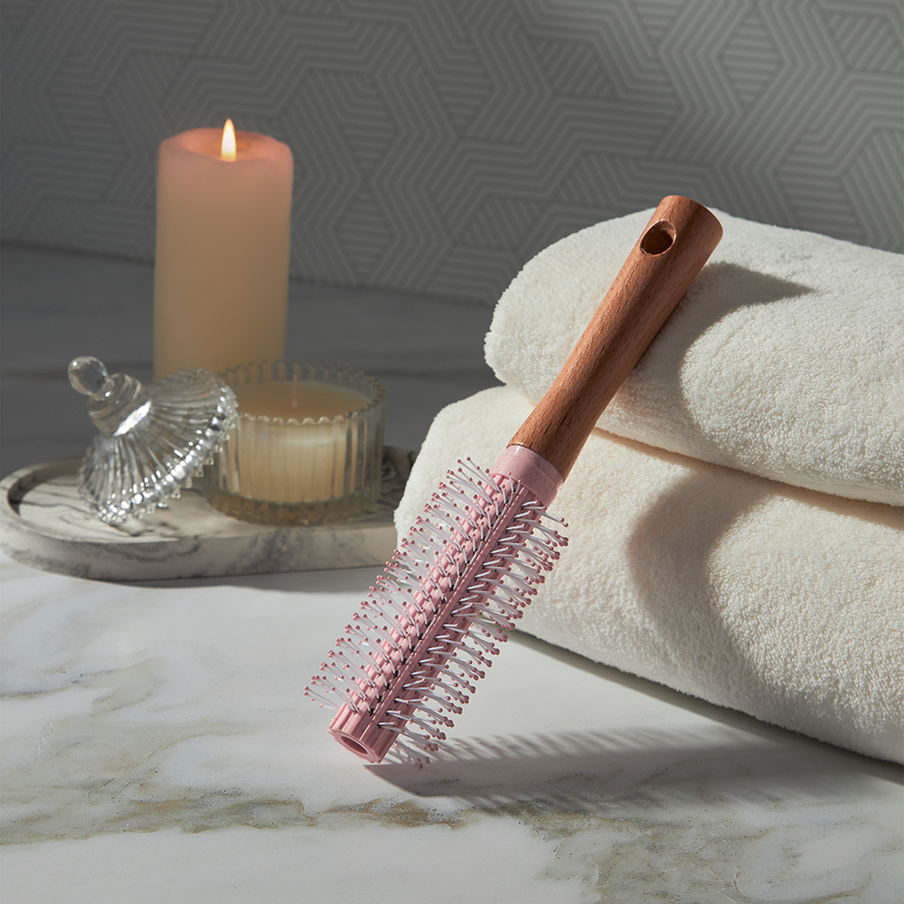 Классическая массажная расческа в нежном пастельном оттенке, подчеркнутом ручкой из приятного натурального дерева. Нейлоновые зубчики закруглены, абсолютно безопасны для кожи головы, оказывают легкий массажный эффект, улучшая кровообращение, что положительно сказывается на состоянии волос. Расческа 21,5х4,5 см легко справляется со спутанными прядями, подходит для всех типов волос, не занимает много места в сумочке.