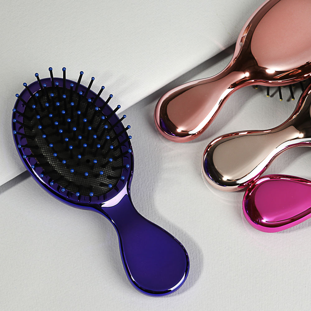 Массажная расческа формата mini с глянцевым металлическим блеском не только поможет привести в порядок непослушные прядки, но и порадует своим блеском! Массажная расческа — идеальный подарок для себя, подруги или маленькой дочки. Расческа в мини-формате — идеальный дорожный вариант, который поместится в любой женской сумочке и не займет много места.