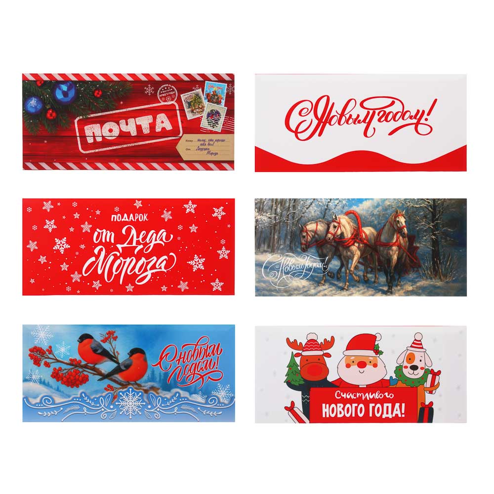 Конверт, 17,5x8 см, бумага, арт.1, 6 дизайнов