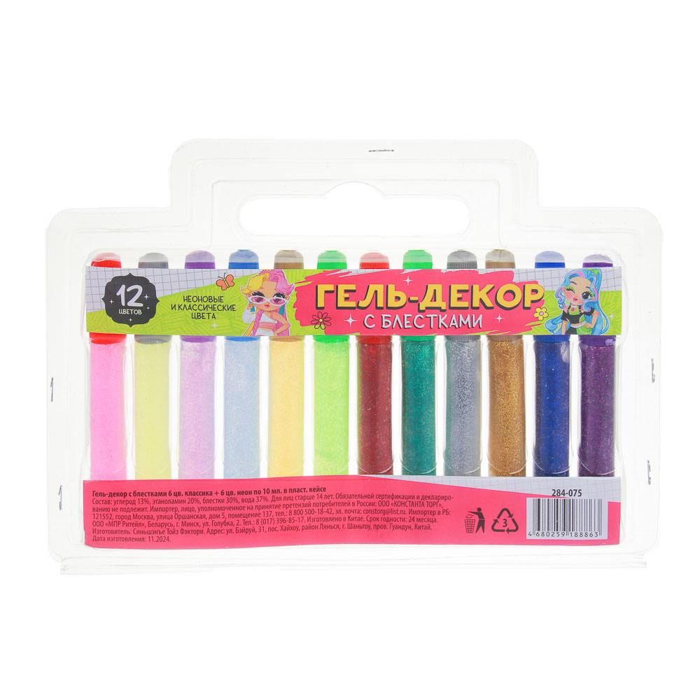 Гель-декор откроет юным художникам новые горизонты для творчества, а также поможет развить мелкую моторику рук, цветовое восприятие, фантазию и воображение. Разнообразие цветовой палитры даёт широкий простор для творчества! По окончании работы удалите лишний гель с наконечника и плотно закройте колпачок, чтобы предотвратить засыхание геля. После нанесения на поверхность гель высохнет в течение нескольких часов в зависимости от толщины нанесённого слоя, а на поделке останутся искрящиеся блёстки.