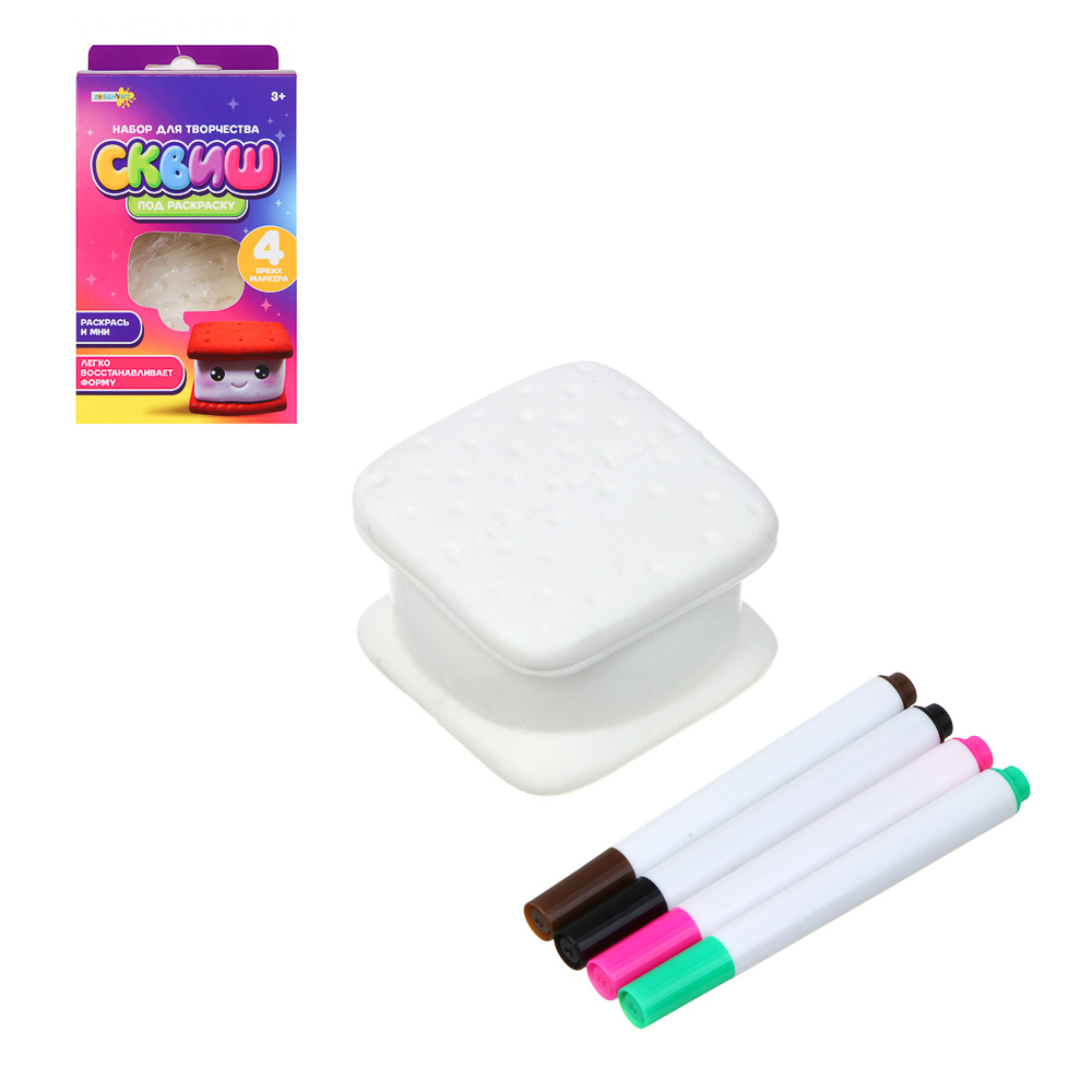 Набор для творчества ХОББИХИТ "Сквиш под раскраску" – это необычная забава для ребенка, которая поможет разнообразить досуг и позволит ребенку проявить свою фантазию. Комплект включает сквиш и набор из 4-х ярких маркеров. После раскрашивания с игрушкой можно играть. Она легко сжимается и медленно восстанавливает форму. Полезна для тренировки мелкой моторики, а также для расслабления. Материал – полиуретан. 3 дизайна в ассортименте.