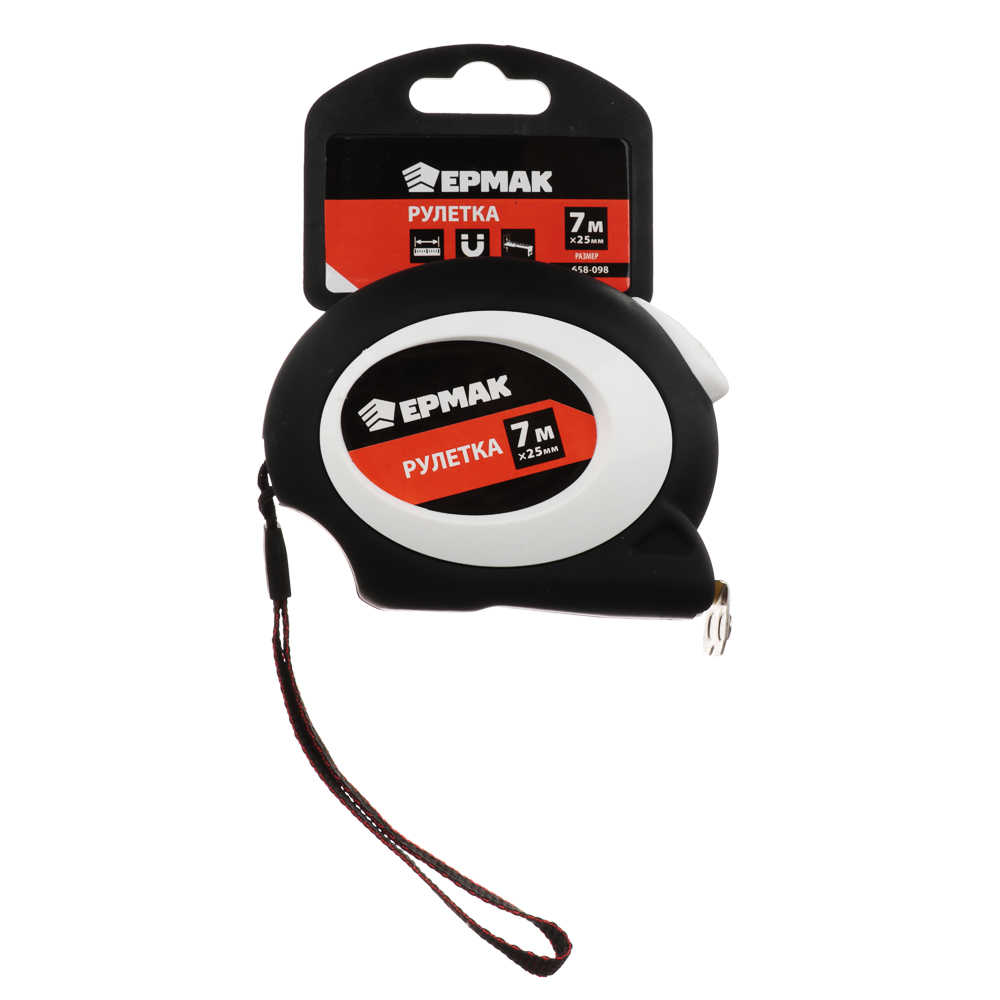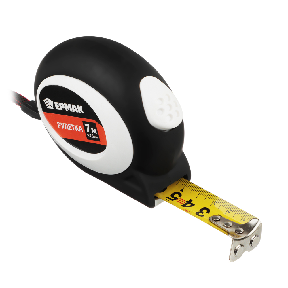 Рулетка ЕРМАК длиной 7,5 м с односторонней измерительной шкалой незаменима во время ремонтных и монтажных работ. Имеет прочный корпус из ABS-стали, устойчивый к механическим повреждениям. Покрытие «soft-touch» обладает антискользящим эффектом. Лента из инструментальной стали со специальным защитным покрытием не ржавеет, обладает высокой прочностью в сочетании с гибкостью. Конец ленты оснащен магнитом для удобства проведении измерений. Для фиксации предусмотрена функция «автостоп».
