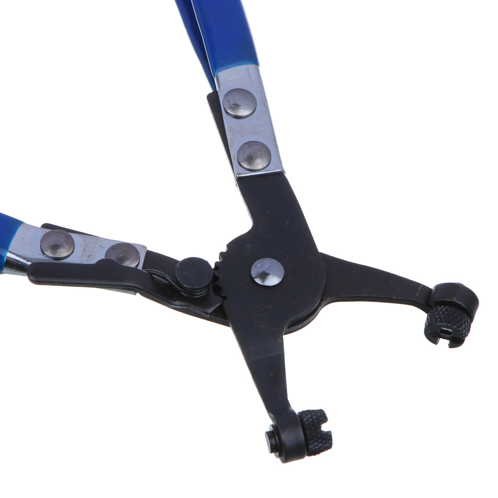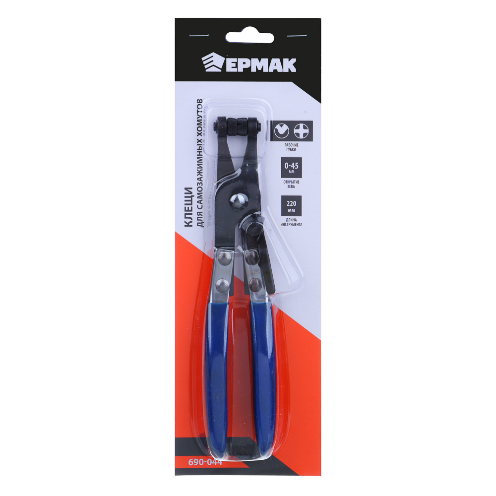Загнутые клещи для самозажимных пружинных хомутов применяются для установки или снятия хомутов в водяных и топливных шлангах транспортного средства. Инструмент имеет трещоточный механизм, благодаря чему хомут можно установить в разжатом виде.Достоинства инструмента:- конструкция эргономичной формы позволяет работать в проблемных местах;- изготовлен из прочных износостойких материалов;- для доступа к труднодоступным участкам рабочая часть изогнута под углом 45 градусов.Щипцы совместимы с большинством самозажимных хомутов. Благодаря прорезиненным накладкам на рукоятках инструмент не выскальзывает даже с влажной ладони.