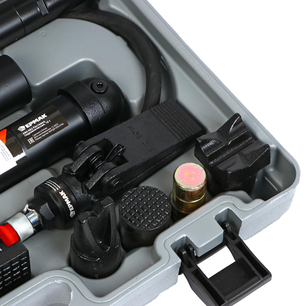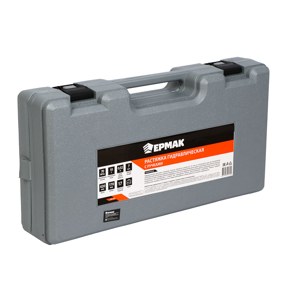 Гидравлическая растяжка ЕРМАК с максимальным давлением 10 тонн и максимальной нагрузкой 70 Мпа – это набор из 17 предметов с 7-мью сменными насадками в жестком пластиковом кейсе. Используется для восстановления исходной геометрии металлических изделий и конструкций, включая автомобильный кузов. Комплект включает различные формы, в том числе для работы в труднодоступных местах. Растяжка позволяет выбрать оптимальную нагрузку в зависимости от твердости конструкции и контролировать степень давления с максимальной точностью, что исключает повреждения и дополнительную деформацию металлоконструкций.