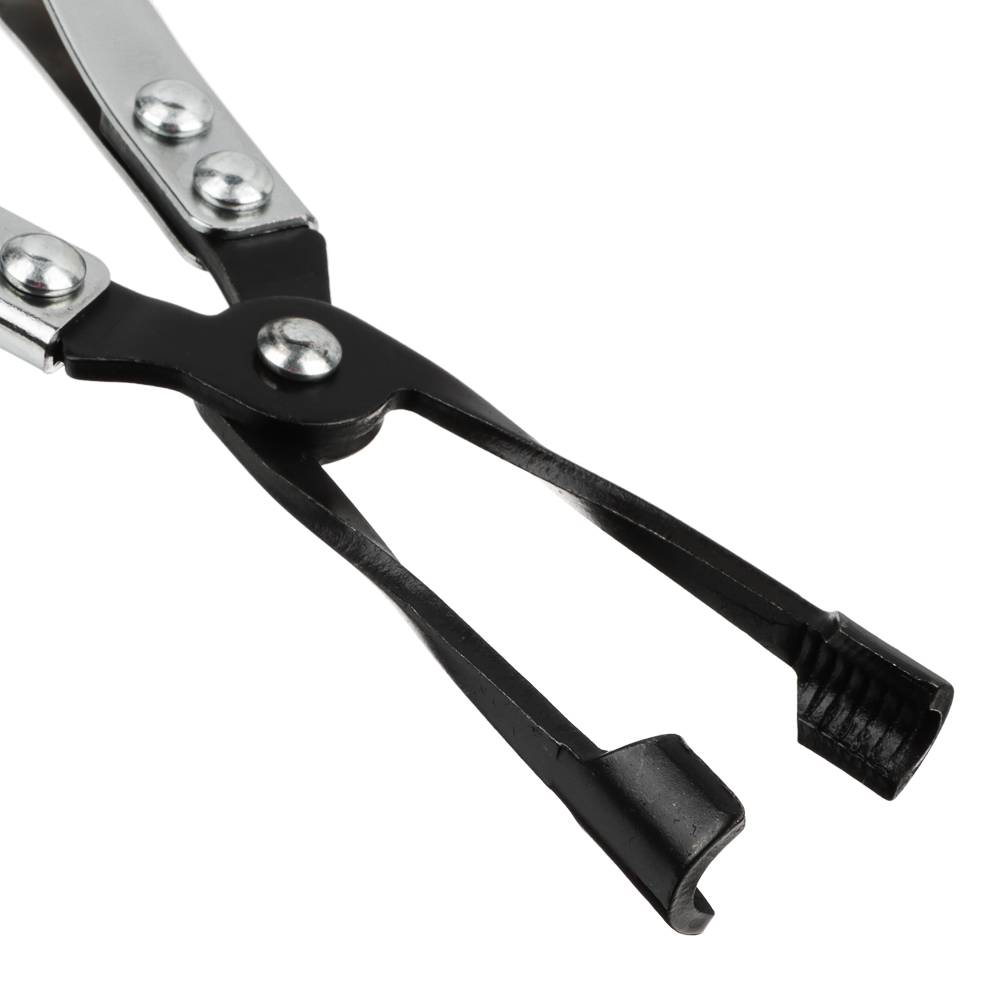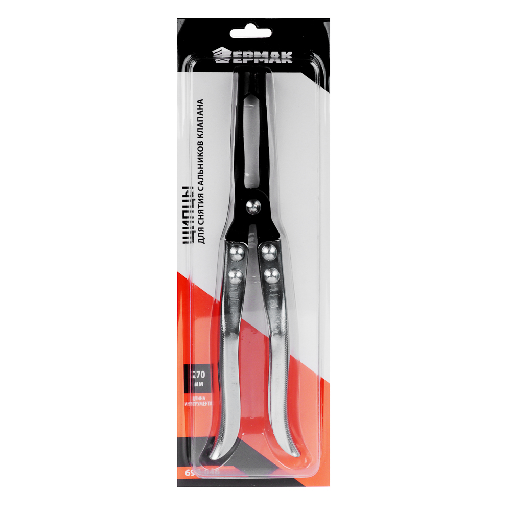 Щипцы для снятия сальников клапана ЕРМАК – это надежный металлический инструмент длиной 27 см, который применяется в ходе обслуживания и ремонта транспортных средств. Имеют узкую вытянутую конструкцию, что позволяет работать в ограниченных пространствах. Щипцы обеспечивают надежный захват и фиксацию колпачка, что позволяет демонтировать клапан быстро и легко.
