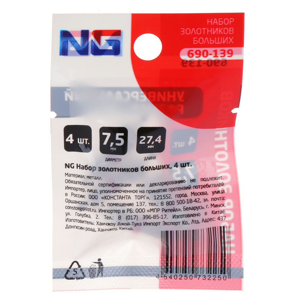 Набор больших золотников для автомобильных шин включает 4 изделия из металла диаметром 7,5 мм и длиной 27,5 мм. Золотники устойчивы к коррозии, прочные, надежно и герметично устанавливаются, препятствуя травлению воздуха из камер автомобильных шин. Рассчитаны на длительный срок службы и не требуют частой замены.