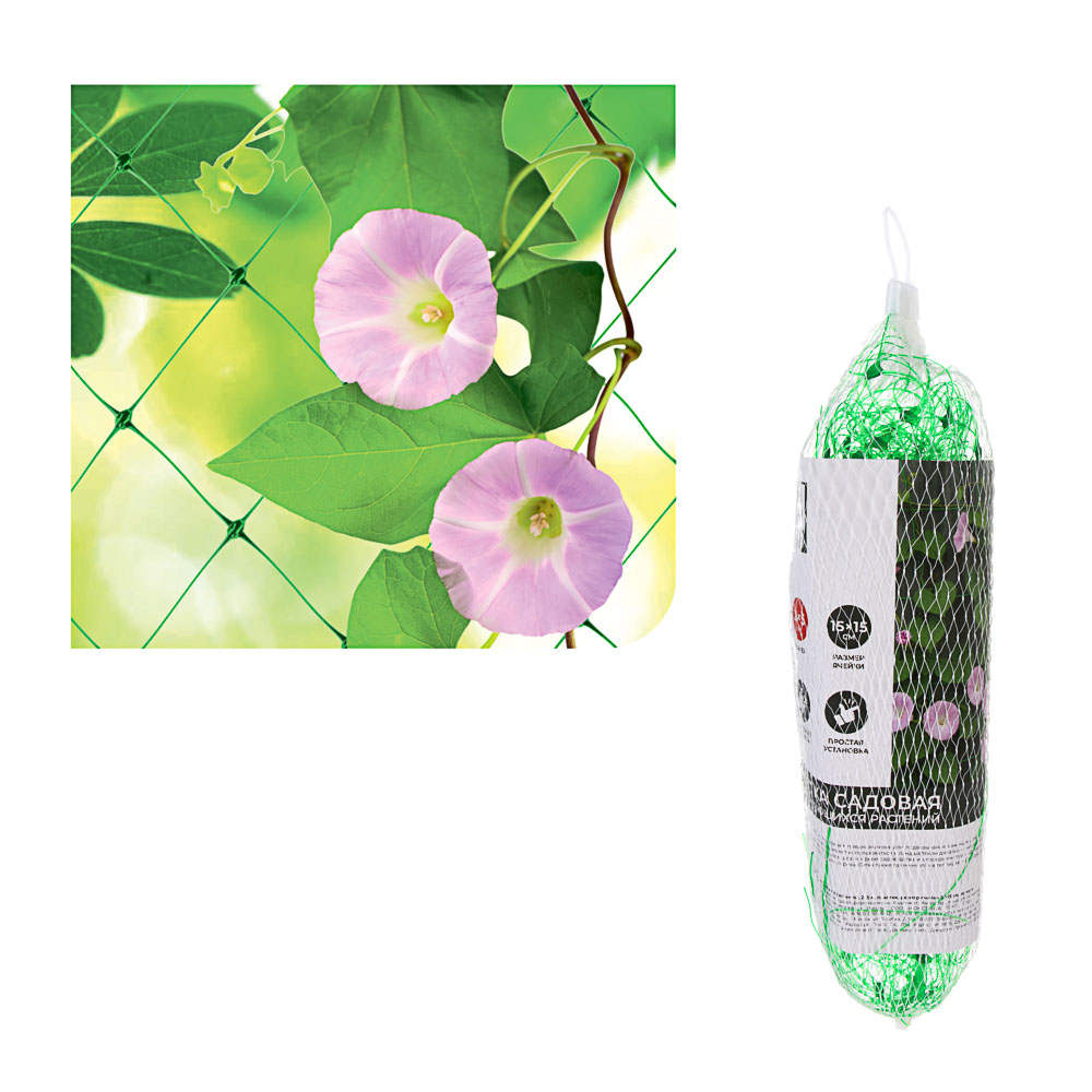 Сетка INBLOOM для вьющихся растений предназначена для подвязывания саженцев в разные периоды их роста. Изделие универсально, поскольку может использоваться в ландшафтном дизайне - например, для подвязывания декоративных кустарников и вьющихся роз, так и в сфере садоводства и огородничества - для вертикального крепления стеблей огуречной рассады, фасоли, гороха. Сетка также применяется в теплицах - для правильного формирования и направленного роста культур.