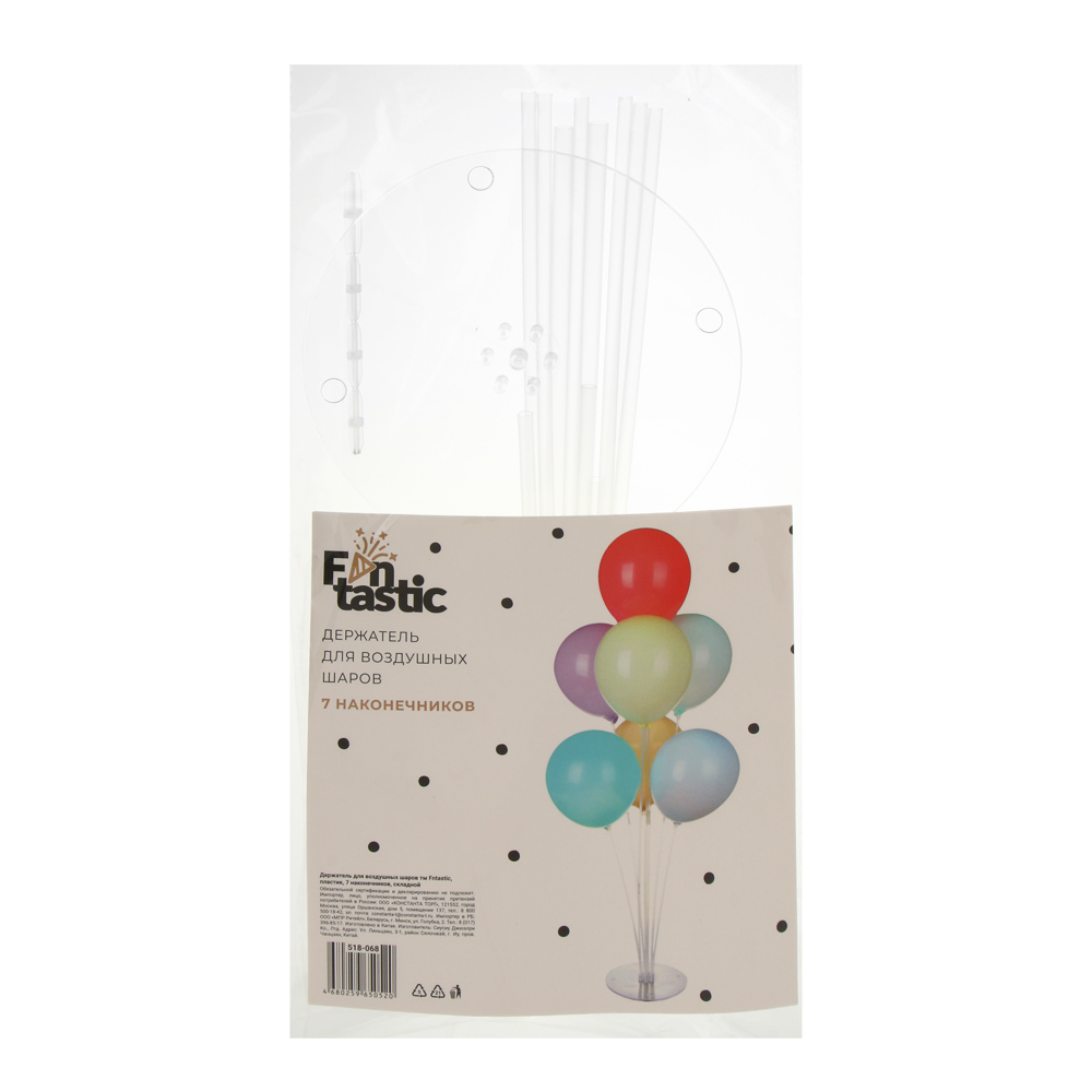 Хотите украсить помещение к празднику? Держатель для воздушных шаров FNTASTIC поможет создать эффектную композицию из семи шаров. Подставка легко разбирается и собирается, предназначена для многократного использования. Конструкция легкая и в то же время устойчивая. Подходит для создания декораций по случаю торжеств, детских праздников, банкетов.
