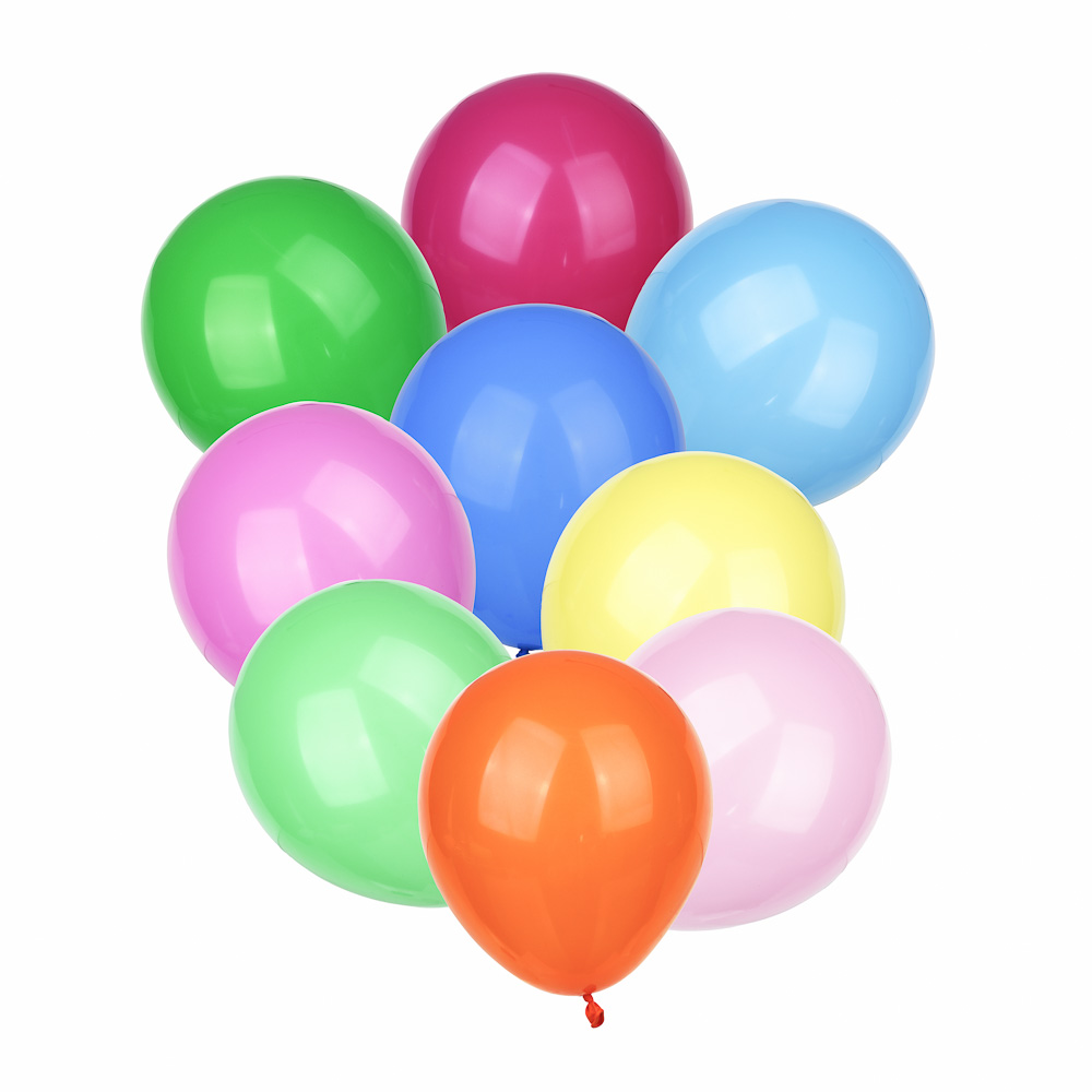 Яркие воздушные шары. Отлично подойдут для праздничного оформления праздников. Набор цветов собран в случайном соотношении, исключая воздушные шары темных цветов, а также белый цвет и прозрачные воздушные шары. Воздушные шары типа пастель характеризуются нежными, пастельными цветами, они непрозрачны и имеют мягкий блик. Стильная поверхность этих шаров станет изысканным дополнением в ваш праздничный интерьер. Прекрасно подойдет в качестве украшения на Новый Год или День Рождения, 8 Марта, день Всех Влюбленных или Свадьбу.