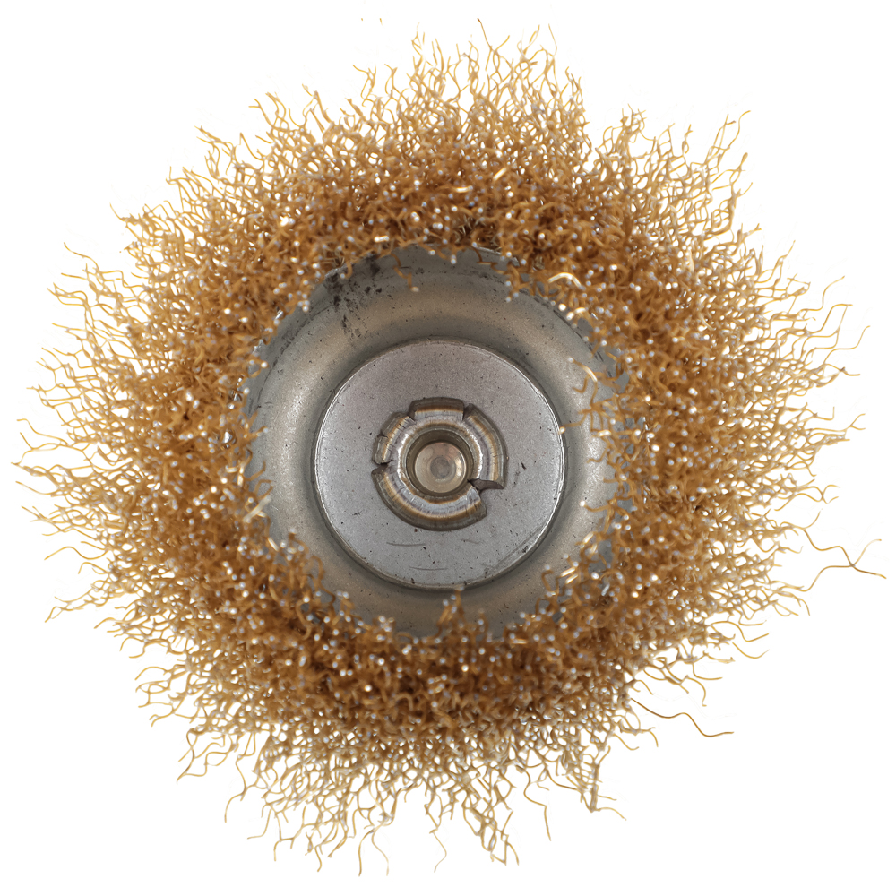 Металлическая щетка со шпилькой для дрели, чашка, 75 мм, используется для удаления ржавчины, окалины и загрязнений с металлических деталей и поверхностей. Форма «чашка» позволяет обрабатывать труднодоступные места и углы, обеспечивая равномерную зачистку.
