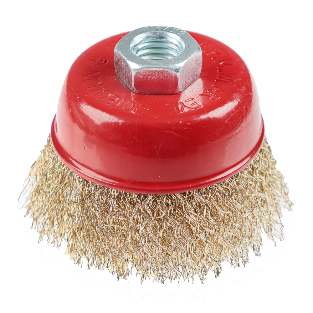 Металлическая щетка для УШМ ЕРМАК «Чашка» 75мм/М14 применяется совместно с угловой шлифовальной машиной. Назначение: очистка металлических поверхностей, торцов деталей, пазов и выемок от загрязнений, ржавчины, остатков краски, а также для зачистки сварных швов. Стальная проволока с латунным покрытием рассчитана на большое количество циклов использования, не истирается и не ржавеет. Имеет надежную посадочную шайбу для фиксации на УШМ.