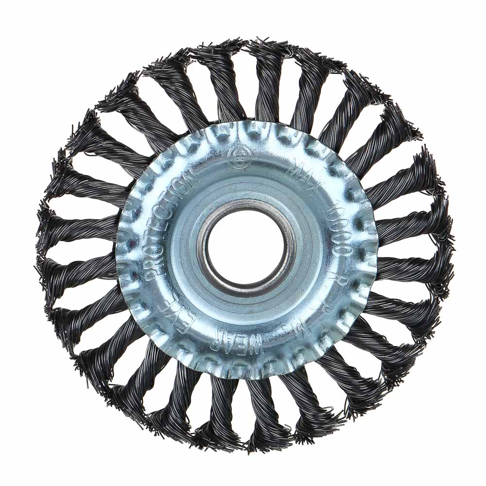 Щетка металлическая крученая РОКОТ для УШМ 125 мм/22 мм дискового типа используется совместно с угловыми шлифовальными машинами. Стальная проволока толщиной 0,5 мм не подвержена износу и отлично справляется с грубыми шлифовальными работами: позволяет быстро убрать остатки краски, загрязнения, ржавчины с различных типов поверхностей, а также применяется для зачистки сварных швов. Изделие долговечное и практичное, незаменимо во время проведения ремонтных и строительных работ.