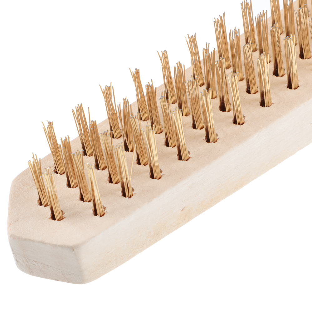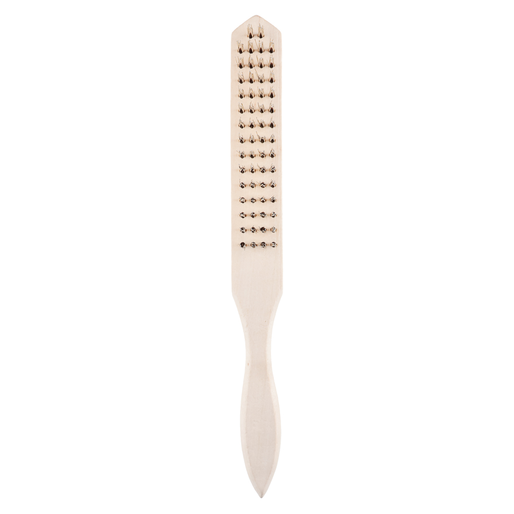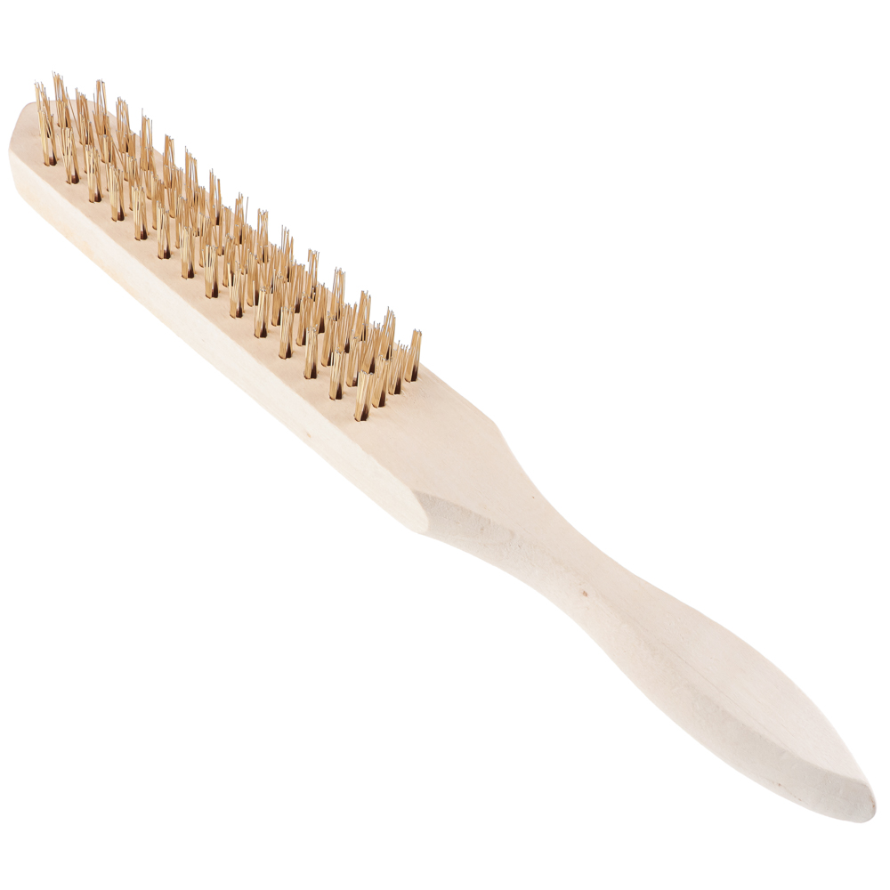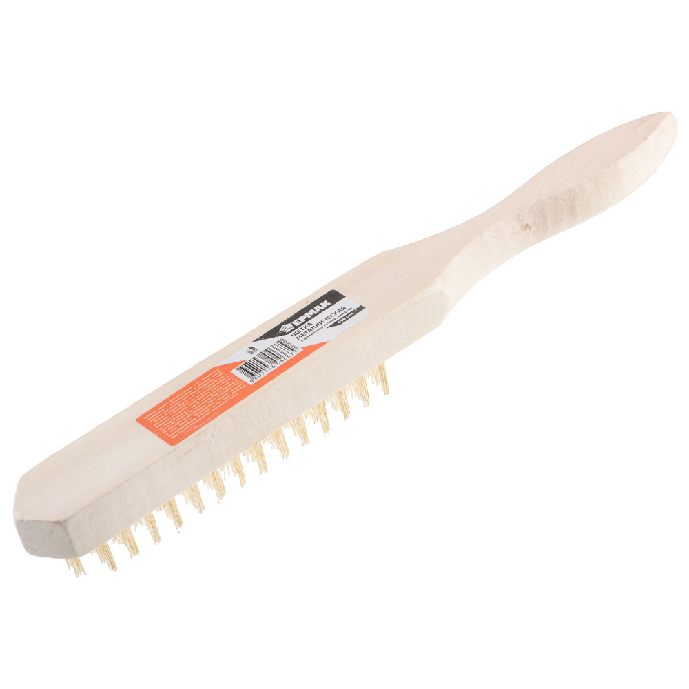 Щетка по металлу ЕРМАК с деревянной ручкой четырехрядная с металлической щетиной применяется для работ по металлическим поверхностям с целью зачистки от старых лакокрасочный покрытий, загрязнений, ржавчины, следов коррозии. Ручной инструмент также можно использовать для удаления заусенцев с торцов деталей и заготовок, зачистки сварочных швов и неровностей. Эргономичная деревянная рукоять имеет гладкую обработку, высокую прочность и надежно ложится в руку.
