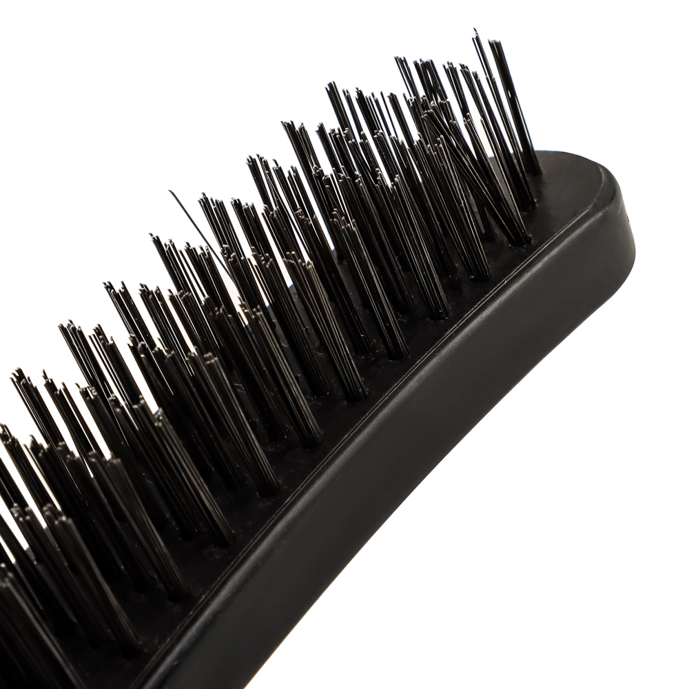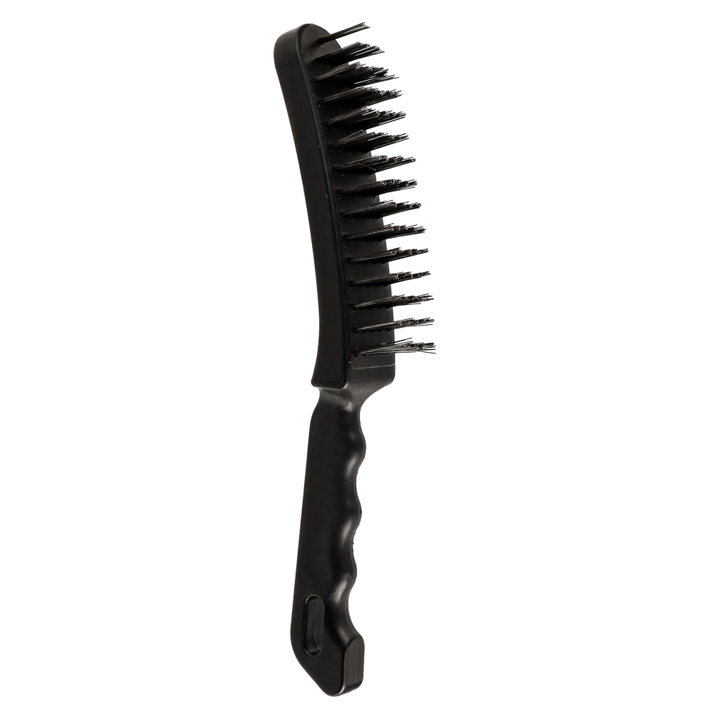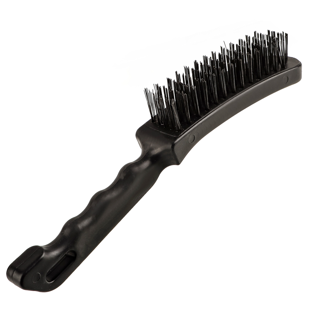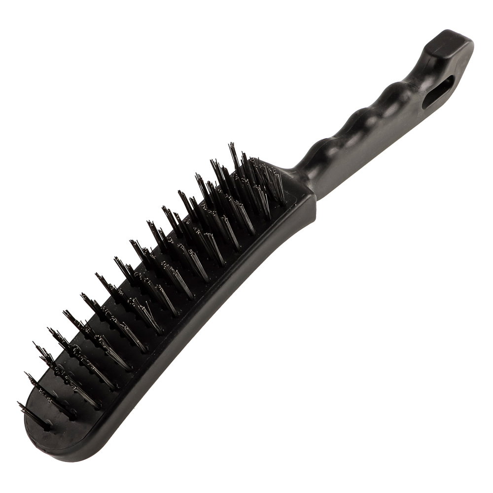 Металлическая щетка с пластиковой ручкой отличается 5-х рядным расположением проволоки. За счет этого увеличивается площадь и качество очистки.