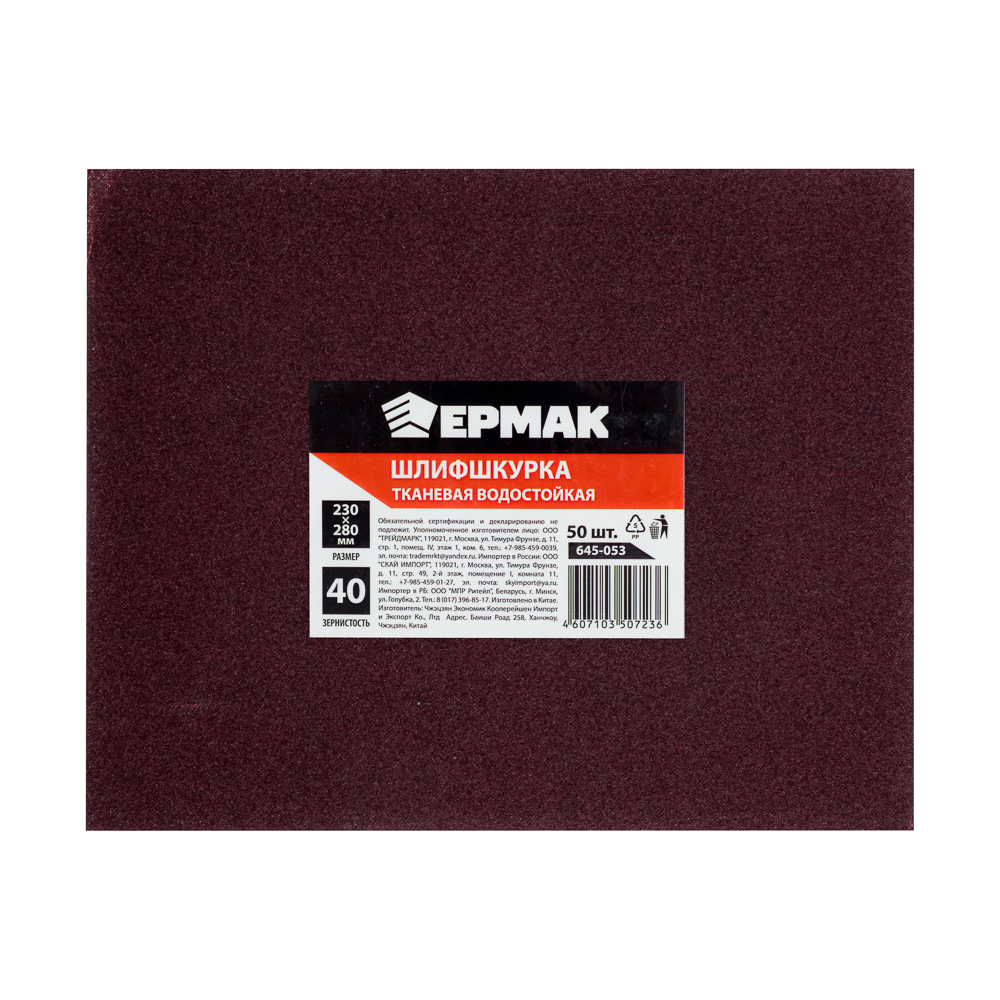 Шлиф-Шкурка водостойкая тканевая на тканево-бумажной основе. Применяется при работе с абразивными и мелкозернистыми материалами. Подходит для шлифования древесины, пластмассы, металла, стекла, керамики, фарфора. Размер: 230х280 мм. Зернистость P40. Количество в упаковке: 50 шт. (упаковка)