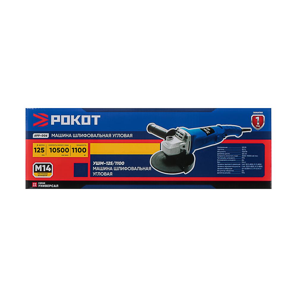 Машина шлифовальная угловая РОКОТ УШМ-125/1200 представляет собой ручную болгарку с абразивным кругом. Предназначена для шлифовки и зачистки поверхностей различных материалов, обработки стыков, а также для резки металлических изделий и керамики – труб, арматуры, плитки. Нескользящая поверхность корпуса и рукоятки обеспечивает комфортный и крепкий хват, а скорость вращения 11 000 об/мин позволяет производить работы в быстром темпе. Электроинструмент работает от сети.