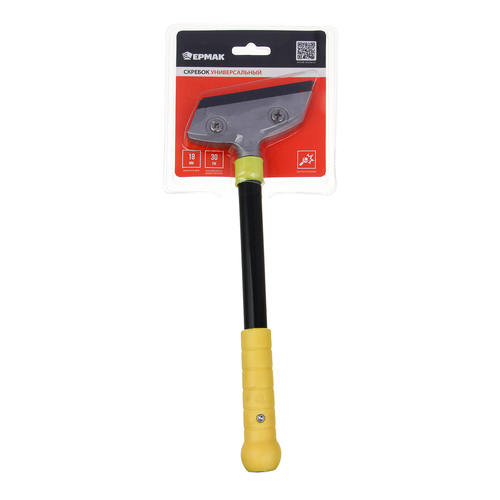 ЕРМАК Универсальный ударный скребок под лезвие 18 мм – профессиональный инструмент для эффективного удаления сложных загрязнений. С 30-сантиметровой металлической рукояткой, покрытой противоскользящим материалом, этот скребок обеспечивает надежный хват и комфорт в работе даже при интенсивном использовании. Его ударная конструкция позволяет применять дополнительное усилие молотком, что делает его незаменимым при удалении стойких наслоений краски, монтажной пены, клеевых остатков и наклеек. Сменное лезвие шириной 18 мм из высокопрочного сплава обеспечивает длительную эксплуатацию и легко заменяется при необходимости. Эргономичный переборщик на рукоятке гарантирует удобный хват, а оптимальная длина инструмента позволяет работать в труднодоступных местах. Этот скребок сочетает в себе универсальность, долговечность и удобство, делая его идеальным выбором как для профессиональных строителей и отделочников, так и для домашних мастеров.