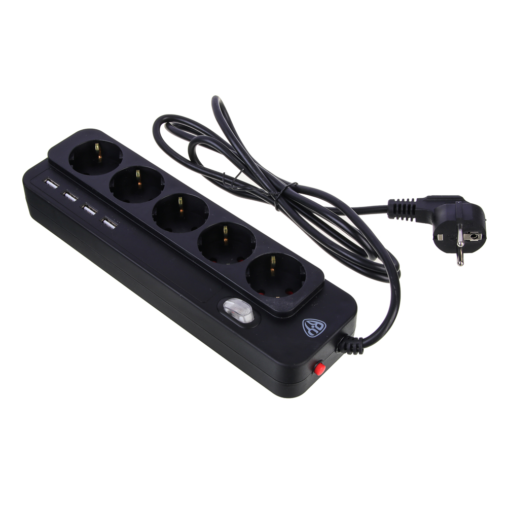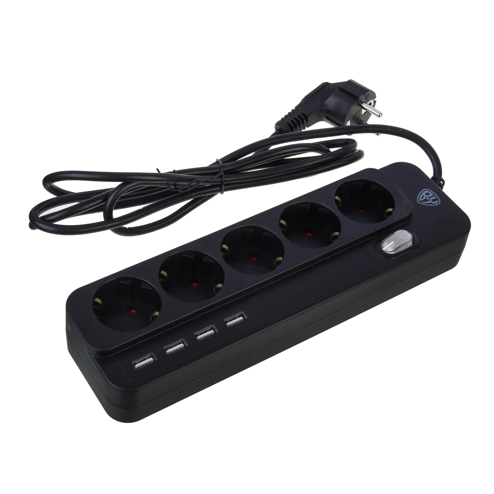 Удлинитель сетевой фильтр BY – это бытовой фильтр на 5 розеток с четырьмя встроенными USB-портами 3A с максимальным пропускным уровнем мощности 2500 Вт. Максимальная сила тока – 10 А. Незаменим для подключения сразу нескольких предметов бытовой и электротехники, включая стационарный компьютер. Наличие USB-разъемов позволяет подключать и заряжать мелкую технику: лампы, фонари, портативные колонки. Длина провода – 2 метра. Предусмотрен выключатель. Цвет – черный.
