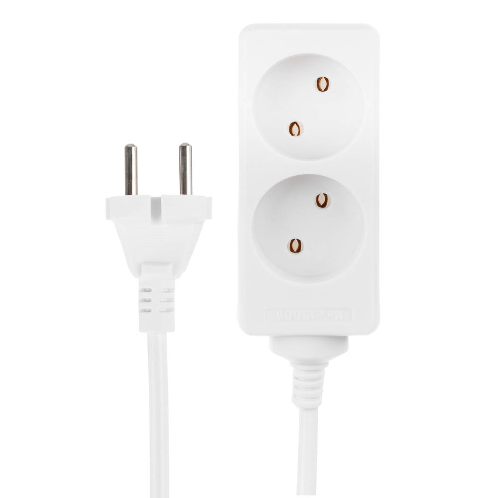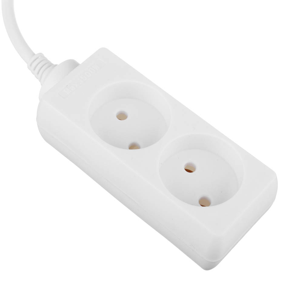 Универсальный электрический удлинитель без заземления. Предназначен для нестационарного подключения потребителей к электрической сети переменного тока, на 2 евророзетки, с максимальной мощностью 1500Вт, длина шнура 3 метра.