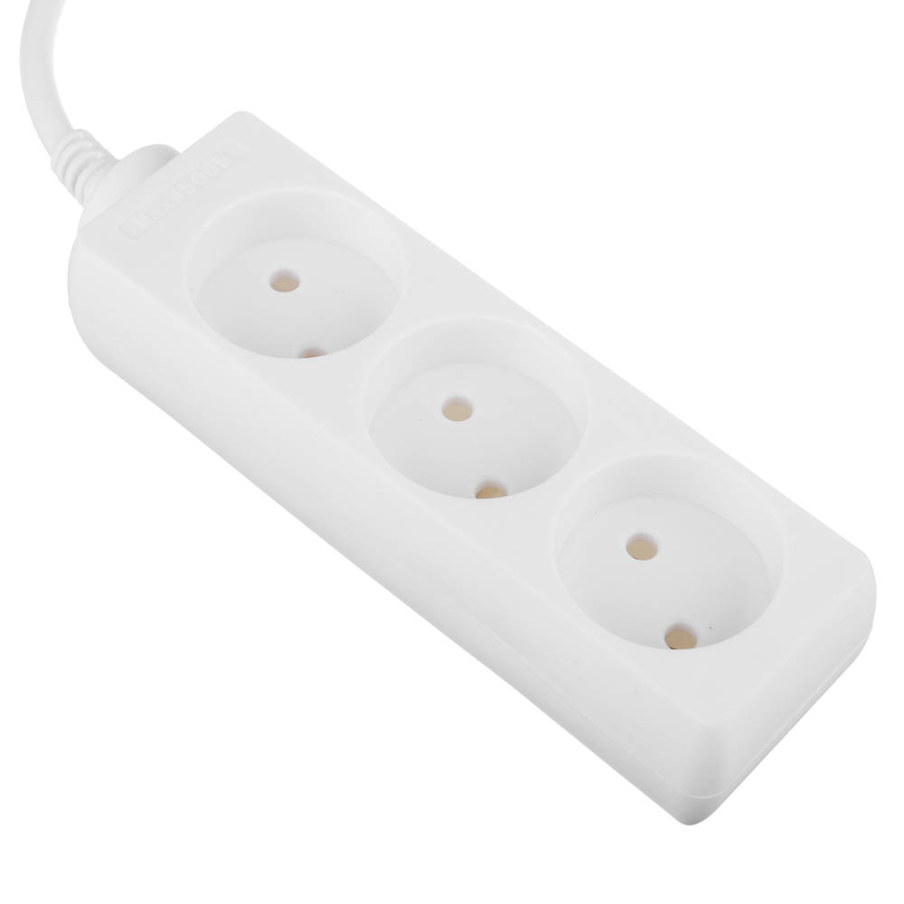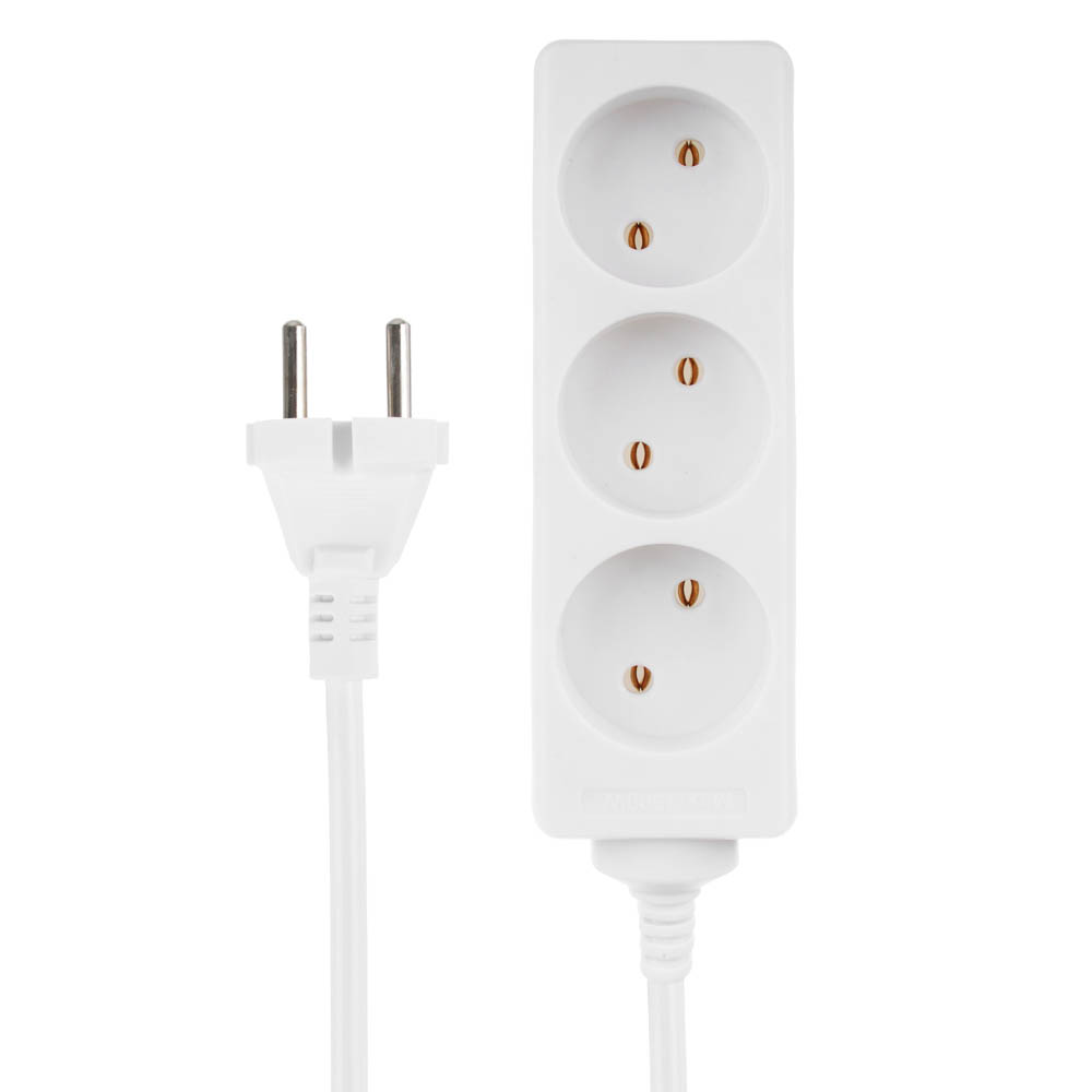 Универсальный электрический удлинитель без заземления. Предназначен для нестационарного подключения потребителей к электрической сети переменного тока, на 3 евророзетки, с максимальной мощностью 1500Вт, длина шнура 2 метра.
