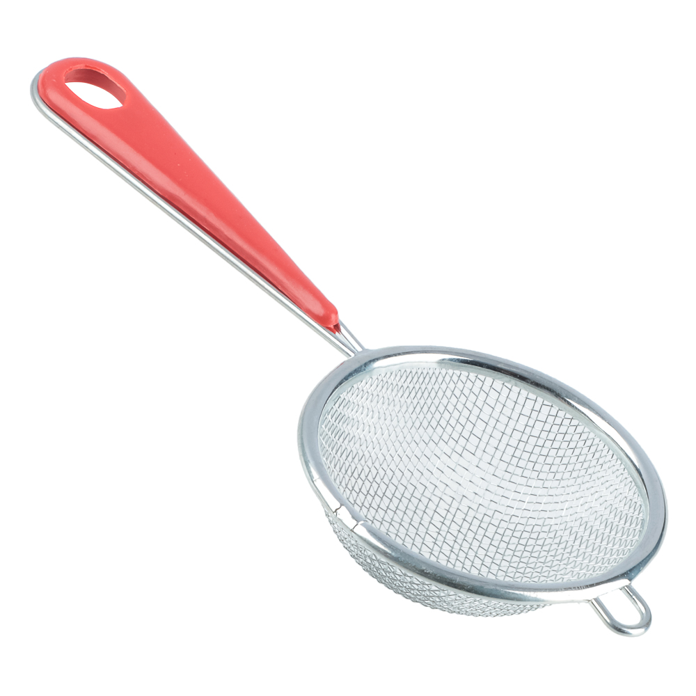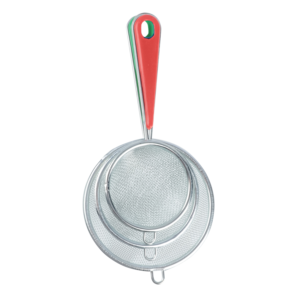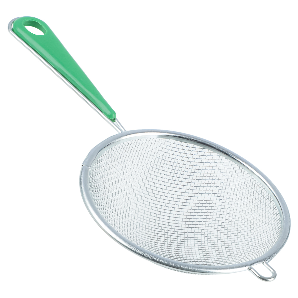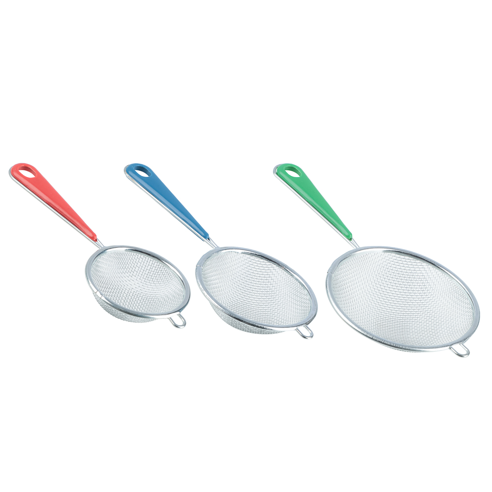 Набор сит из 3 штук — универсальный помощник на кухне. В набор входят сита разного диаметра: 6 см, 7 см и 9 см, выполненные из прочной луженой стали, которая обеспечивает посуде долгий срок службы и устойчивость к коррозии. Сита предназначены для самых разных целей: процеживания жидкостей, просеивания муки, какао и других сыпучих продуктов, заваривания чая и промывания ягод. Сито не засоряется и легко моется. Каждое сито оснащено удобной длинной ручкой в ярком цвете и петлей для подвешивания.