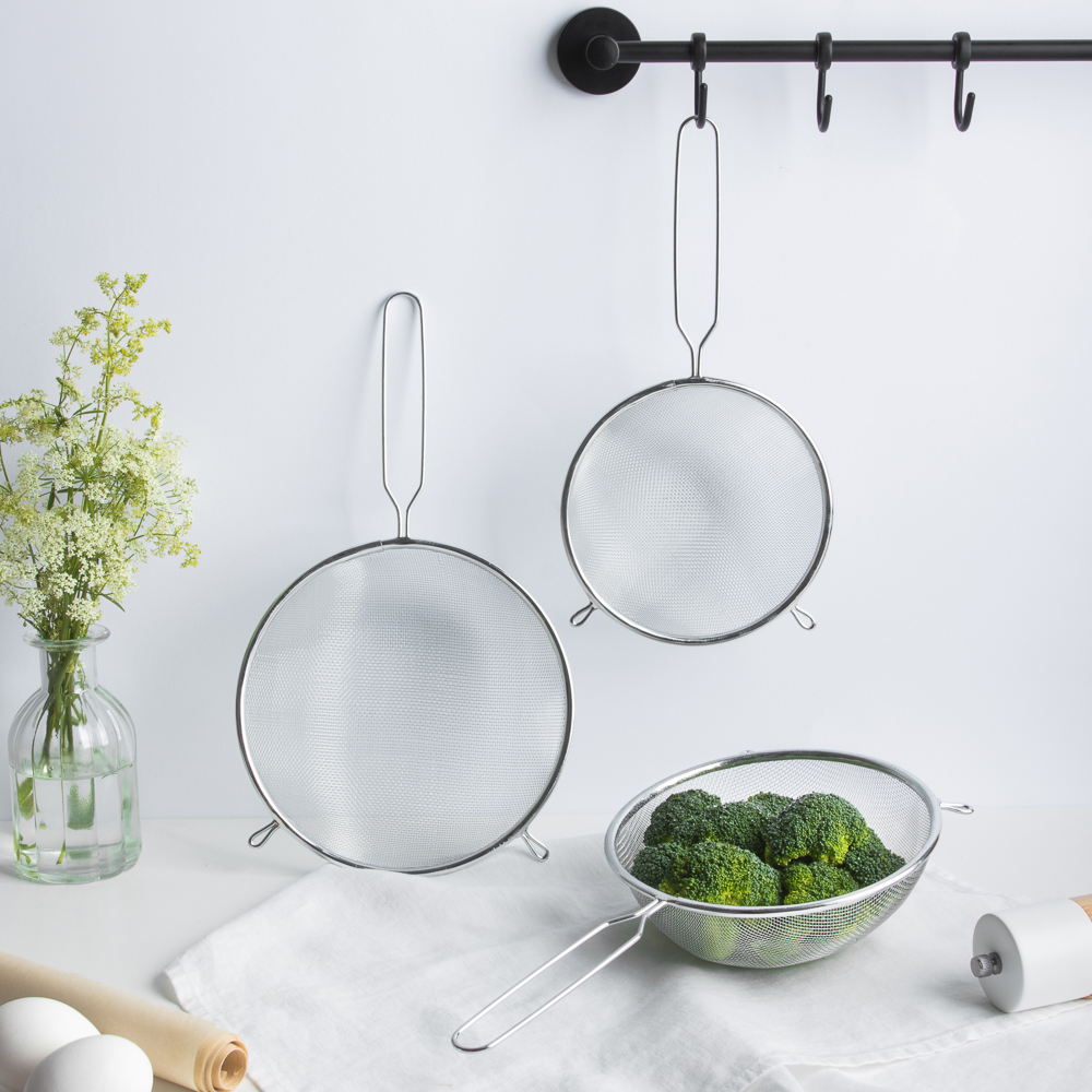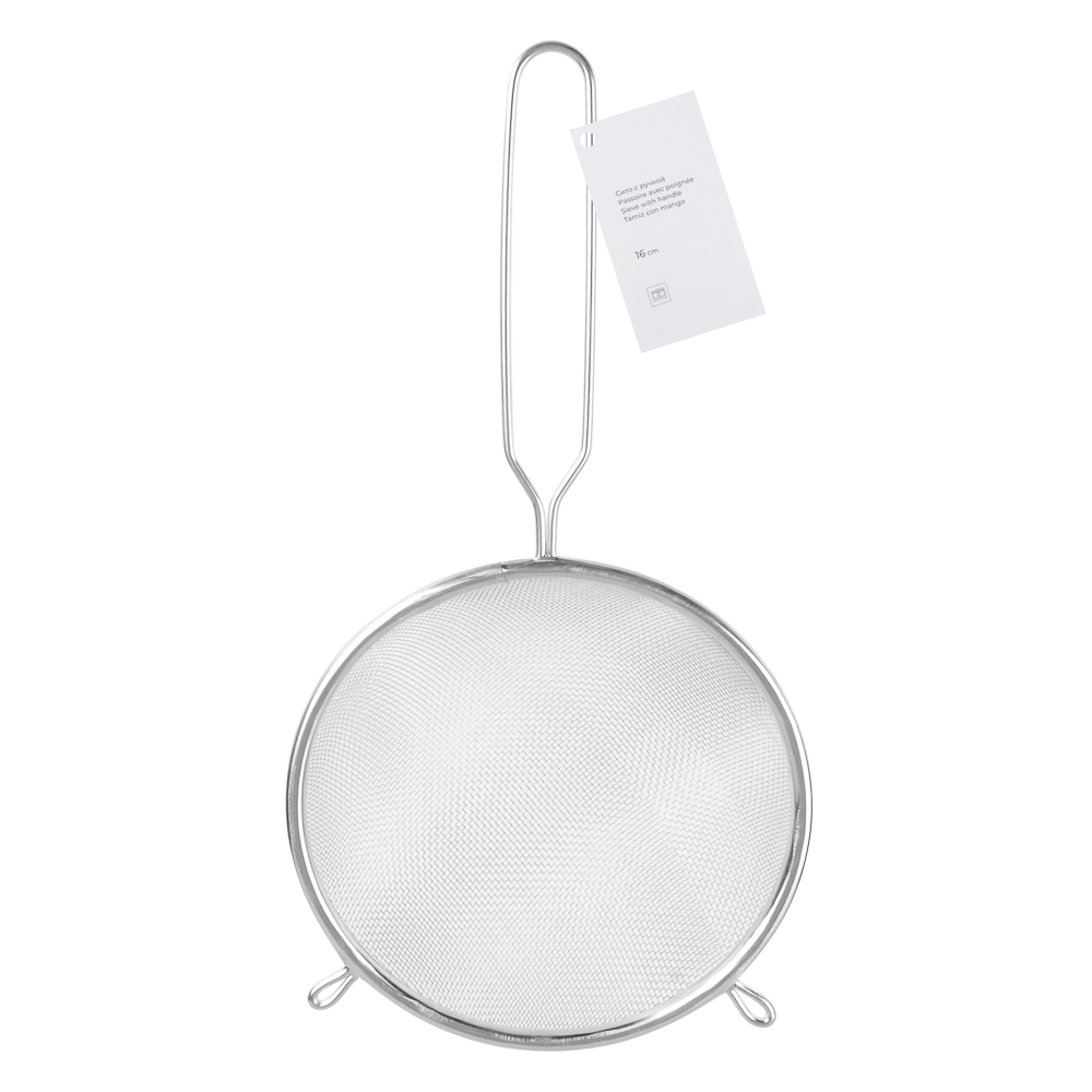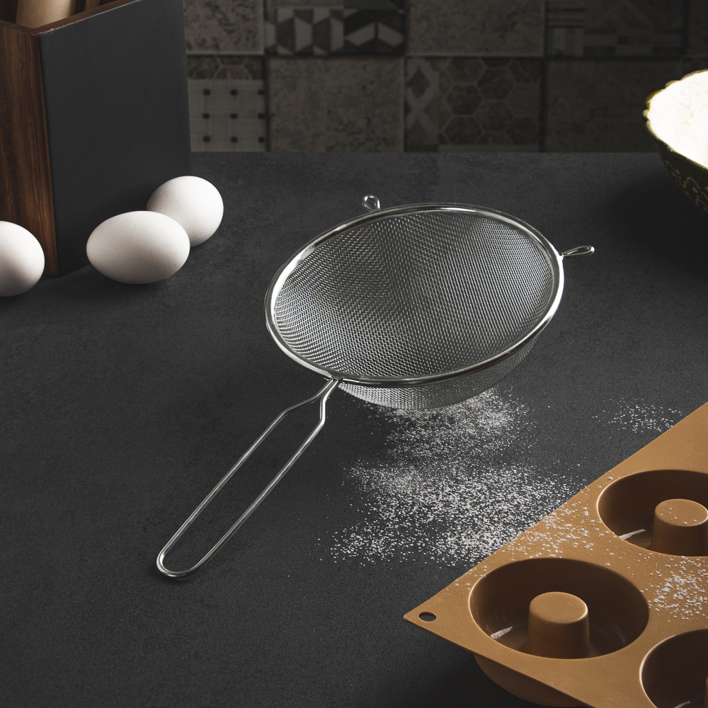 Cито с ободом и ручкой идеально подходит для просеивания муки, сахарной пудры, какао и других сыпучих продуктов. Изготовлено из прочной нержавеющей стали. Обод сита предотвращает просыпание продуктов, а удобная ручка позволяет легко переносить сито во время использования. Диаметр сита составляет 16 см, что позволяет обрабатывать большие объемы продуктов. Это незаменимый инструмент для любого кулинара, пекаря или кондитера.