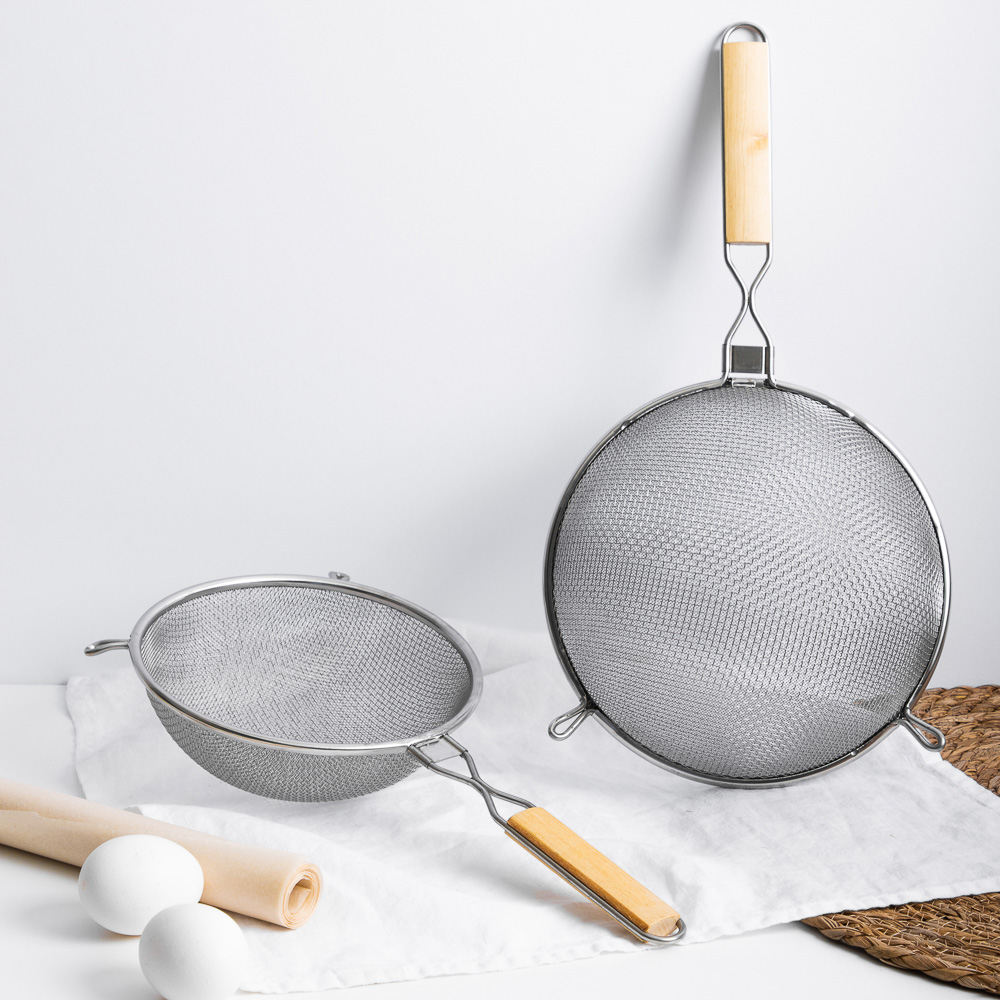 Сито с двойной сеткой, ободом и ручкой станет незаменимым помощником на любой кухне. Изготовлено из высококачественной нержавеющей стали. Обод предотвращает просыпание продукта, а удобная ручка облегчает использование сита. Размер 18,5 см позволяет обрабатывать большое количество продуктов, а двойная сетка обеспечивает более эффективное просеивание.