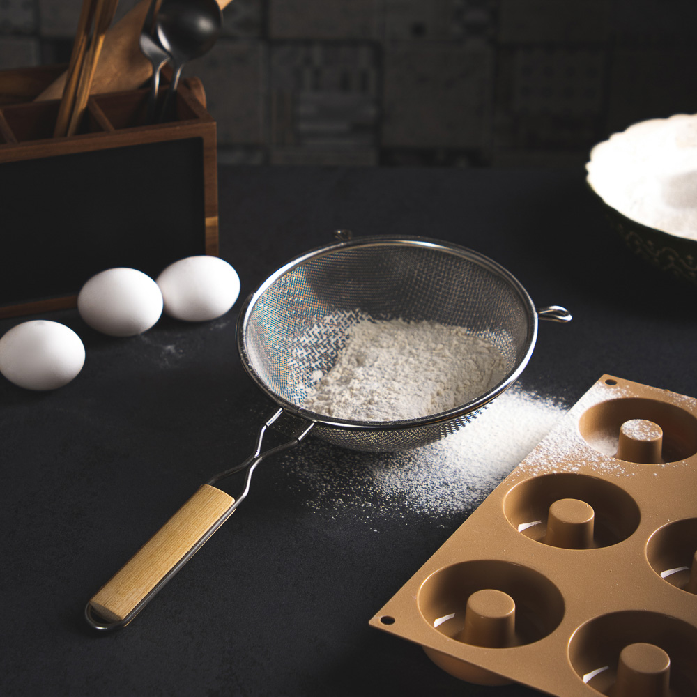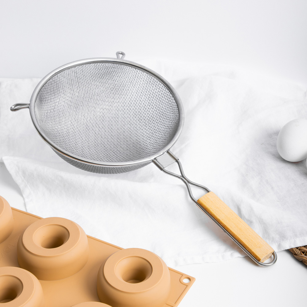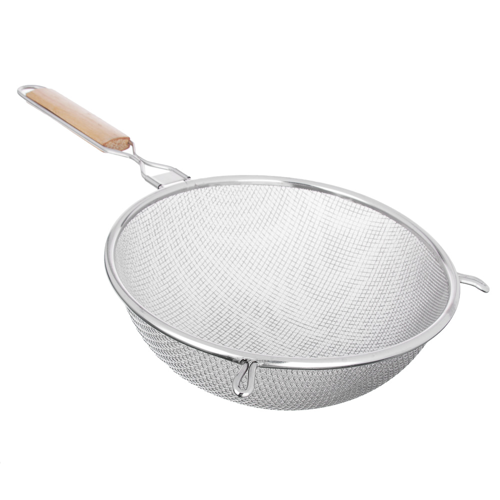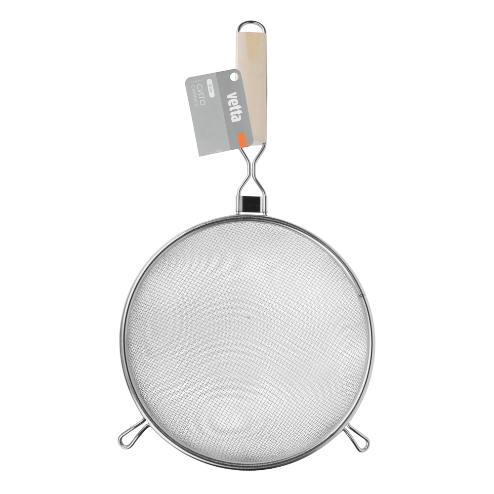 Сито с двойной сеткой, ободом и ручкой станет незаменимым помощником на любой кухне. Изготовлено из высококачественной нержавеющей стали. Обод предотвращает просыпание продукта, а удобная ручка облегчает использование сита. Размер 21 см позволяет обрабатывать большое количество продуктов, а двойная сетка обеспечивает более эффективное просеивание.