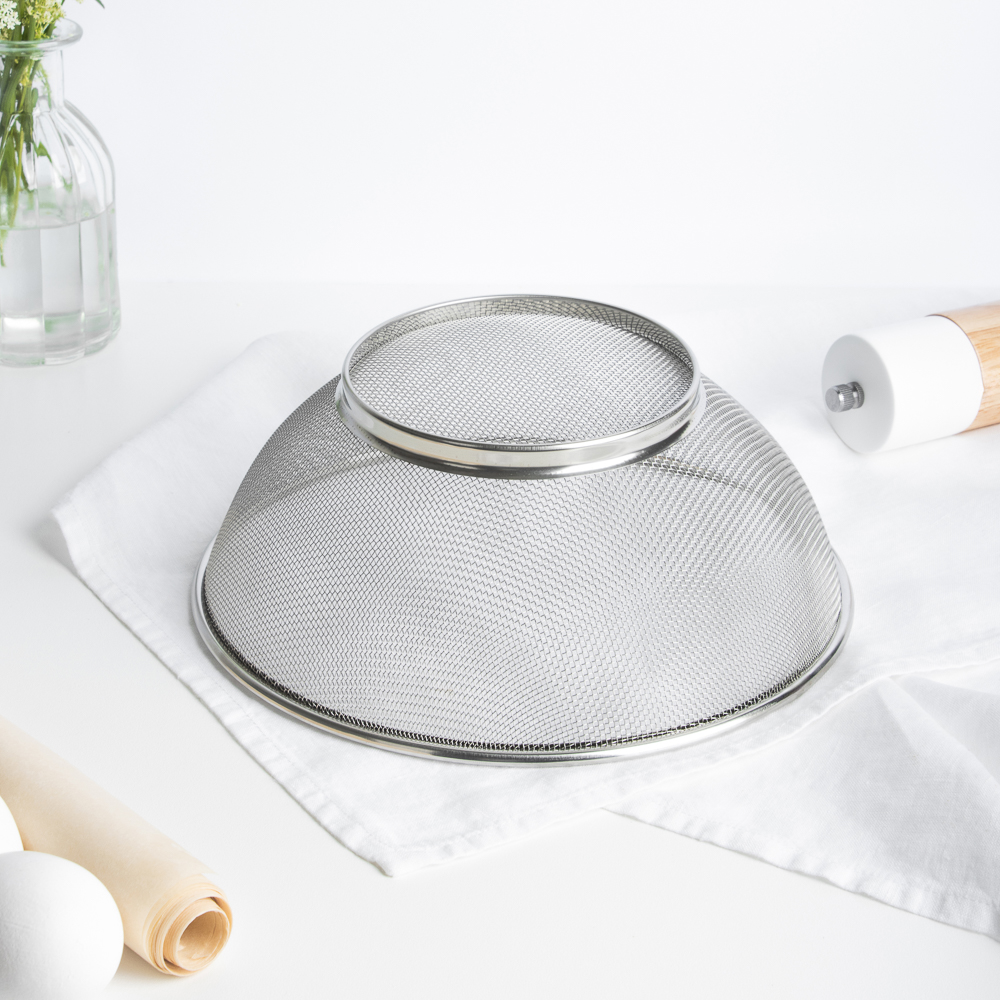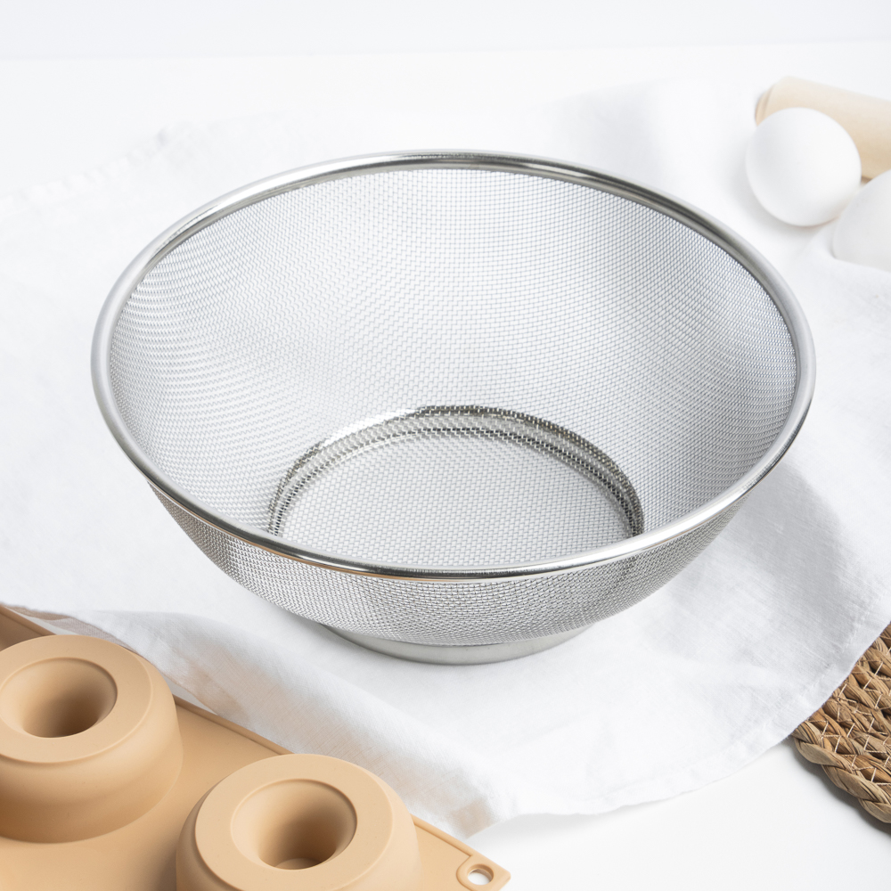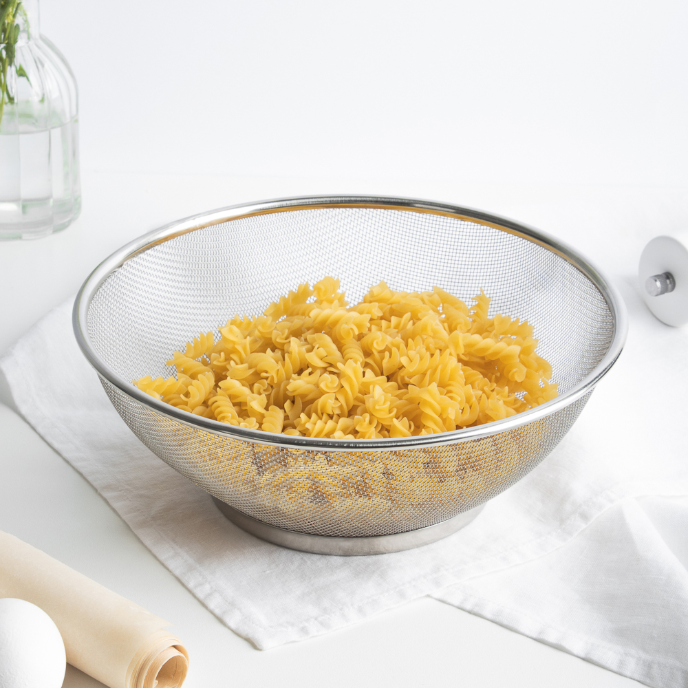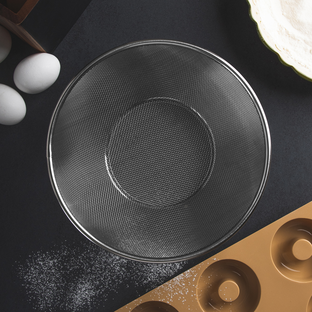 Сито на ножке из нержавеющей стали диаметром 24 см отлично подходит для отделения жидкости от твердых частиц в продуктах. Имеет прочную конструкцию с ножкой для устойчивости и ручкой для удобства использования. Сито имеет множество отверстий, что позволяет эффективно просеивать продукты. Благодаря нержавеющей стали, сито легко моется и не ржавеет со временем.
