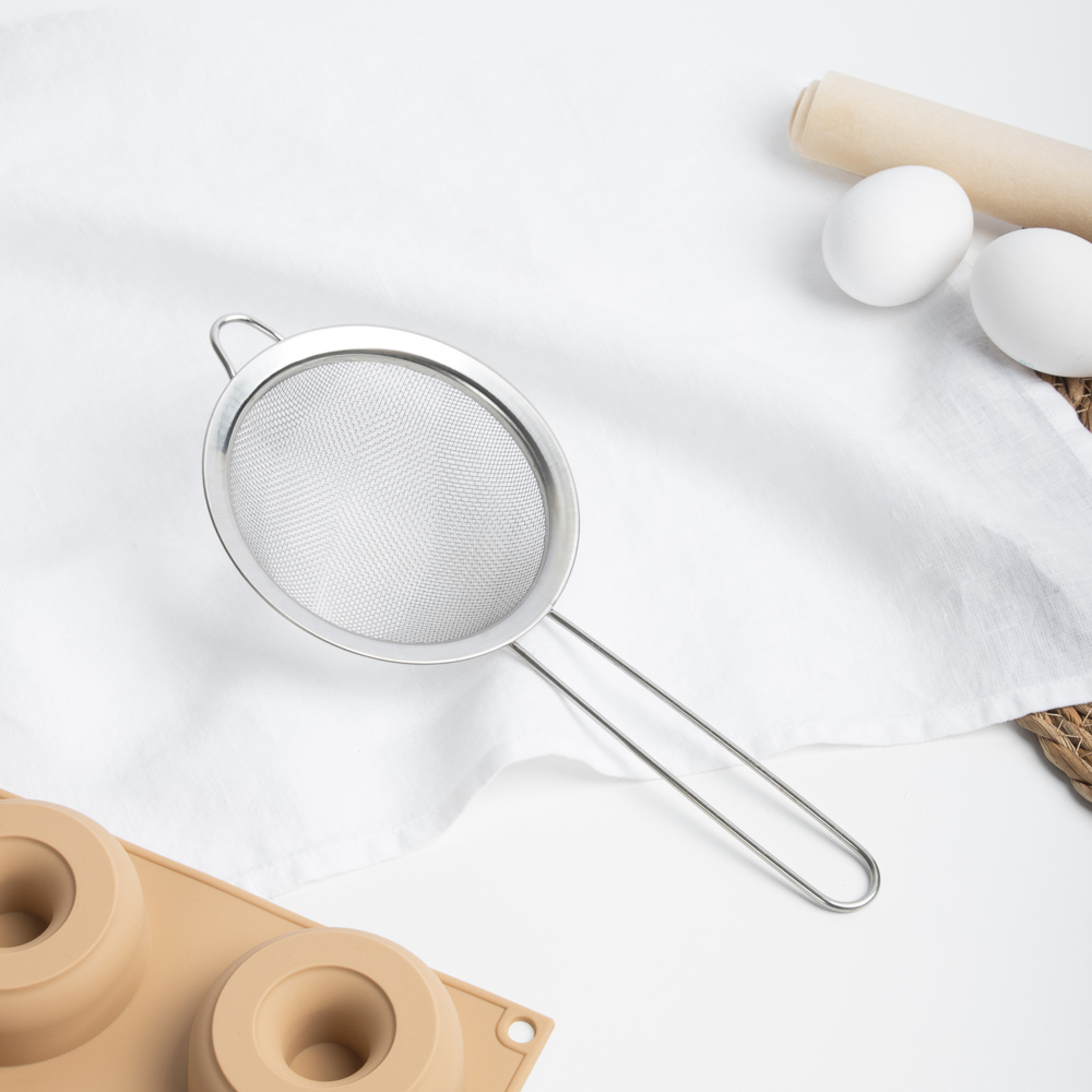 Сито с ободом и ручкой VETTA, диаметром 12 см, изготовлено из прочной нержавеющей стали, надёжный помощник на любой кухне. Идеально подходит для процеживания соусов, молока, бульонов, отвара или для просеивания муки и сахара. Мелкая сетка эффективно задерживает даже мельчайшие частицы, а широкий обод обеспечивает удобное положение сита на краю кастрюли или миски. Удобная длинная ручка позволяет уверенно держать сито во время работы, не обжигаясь, а её эргономичная форма ложится в руку без усилий. Легкое, гигиеничное, устойчивое к коррозии и легко моется.
