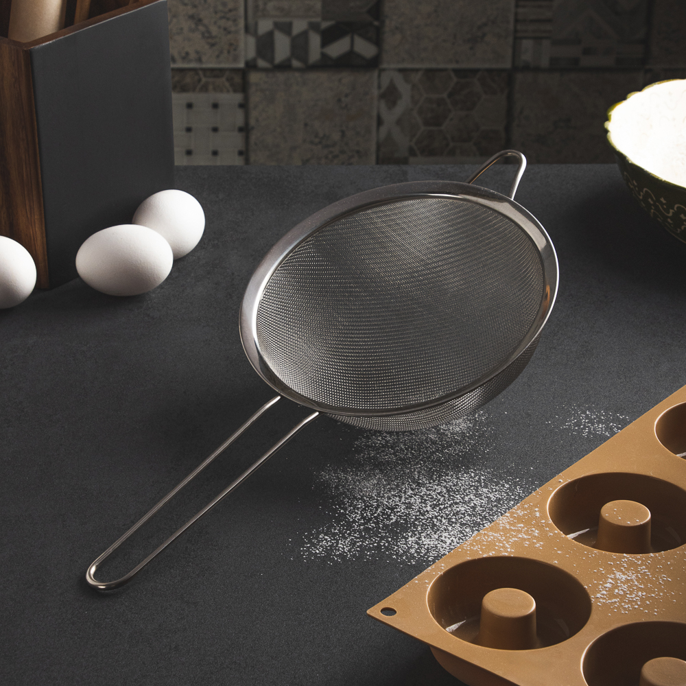 Сито из нержавеющей стали для фильтрации различных ингредиентов - от просеивания муки до процеживания чая от чаинок. Отлично выполняет свою функцию. Ситечко займет достойное место на вашей кухне.
