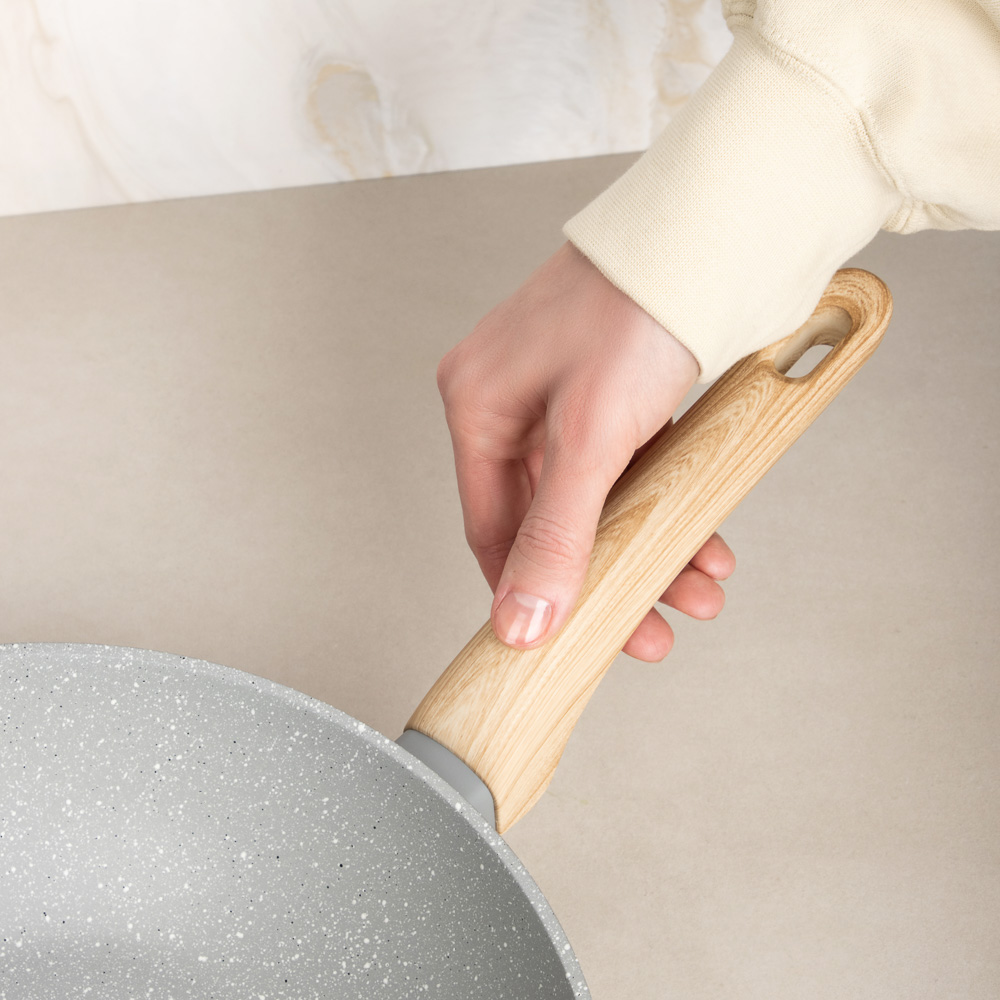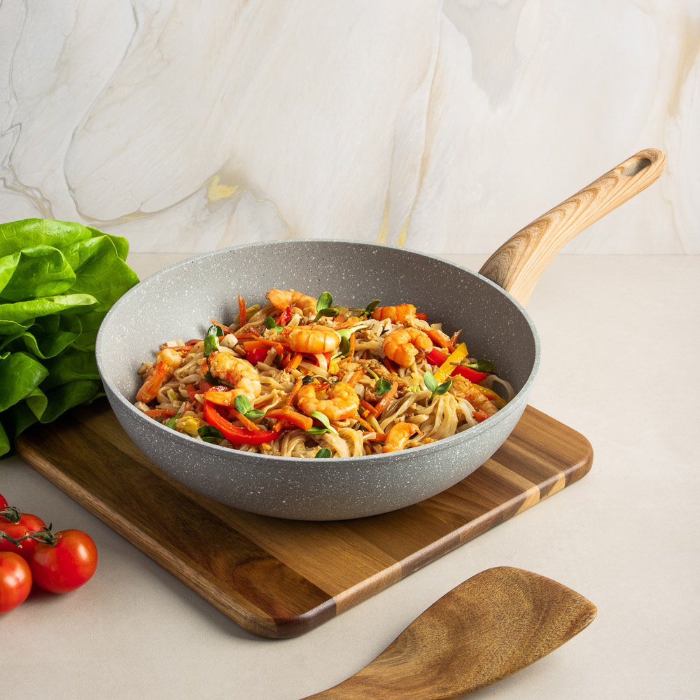 Приготовьте свои любимые азиатские блюда с воком SATOSHI Берг! Литой алюминиевый корпус диаметром 28 см с улучшенным теплораспределением обеспечит быстрое и равномерное приготовление блюд. Антипригарное мраморное покрытие, выдерживающее 9000 циклов истирания, гарантирует легкое приготовление и чистку. Подходит для всех типов плит, включая индукционные. Удобная эргономичная ручка с прорезиненным покрытием софт-тач, имитирующим дерево, не скользит и не нагревается. Стильный серый цвет и облегченный корпус делают вок SATOSHI Берг не только функциональным, но и эстетичным дополнением вашей кухни. Максимальная температура 250°C позволит вам реализовать любые кулинарные идеи.