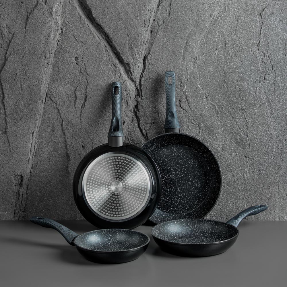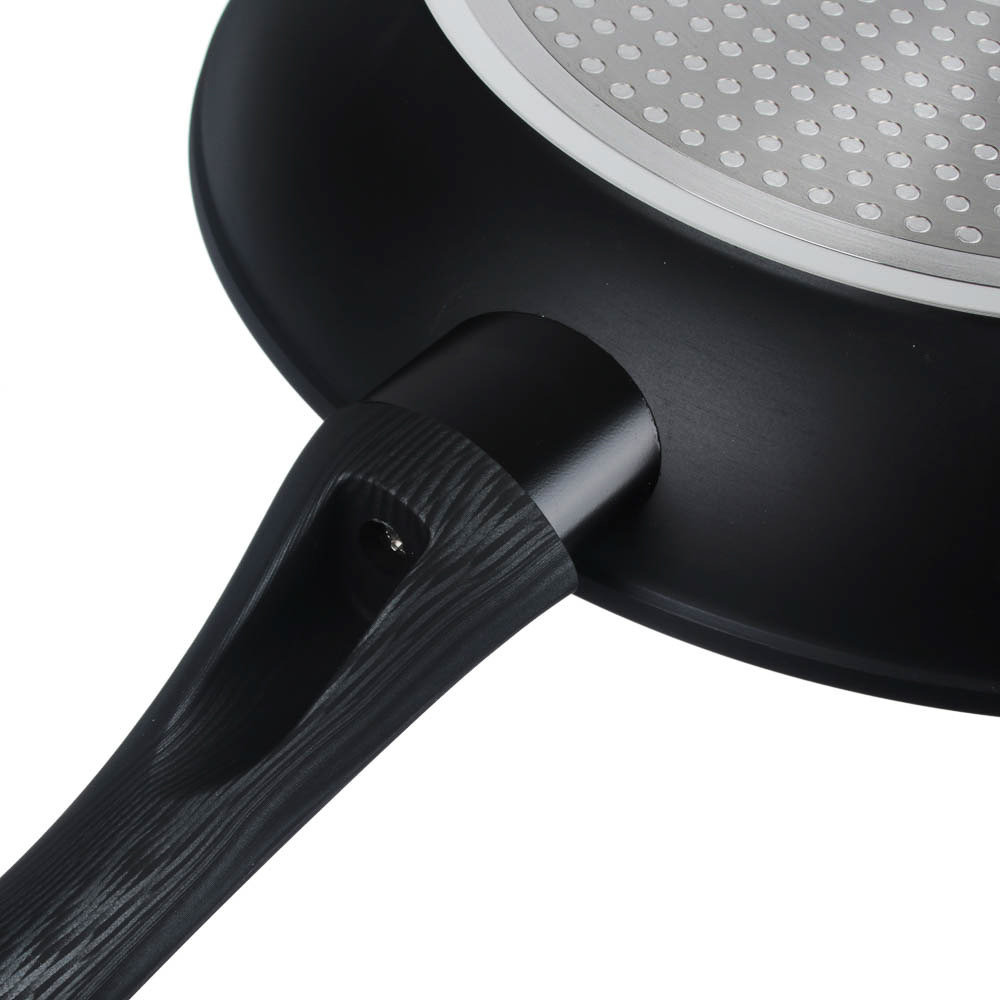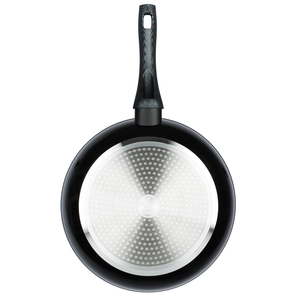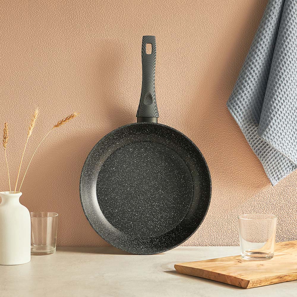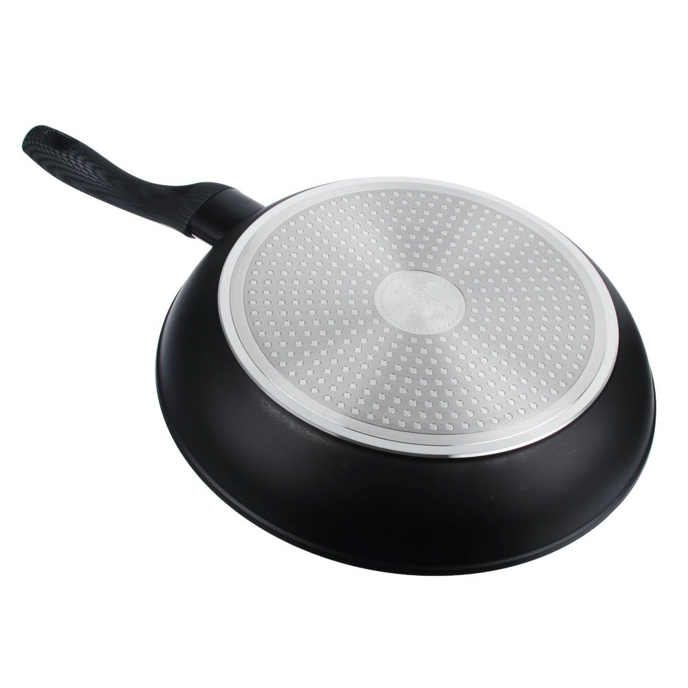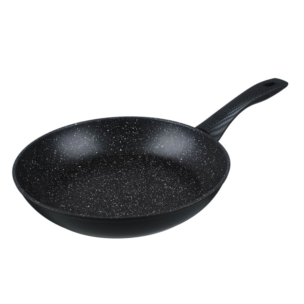 Сковорода SATOSHI "Карбон" диаметром 28 см выполнена из литого алюминия, что обеспечивает качественную равномерную прожарку продуктов. Рабочая поверхность сковороды защищена прочным антипригарным покрытием под мрамор, а снаружи нанесено термостойкое покрытие черного цвета. Отличительная особенность серии "Карбон" - это оригинальный графичный дизайн ручки черно-серого цвета. Сама ручка изготовлена из бакелита с силиконовым напылением, не нагревается и не скользит. Сковорода подходит для использования на всех видах плит, в том числе и индукционной плиты, а также для мытья в посудомоечной машине.