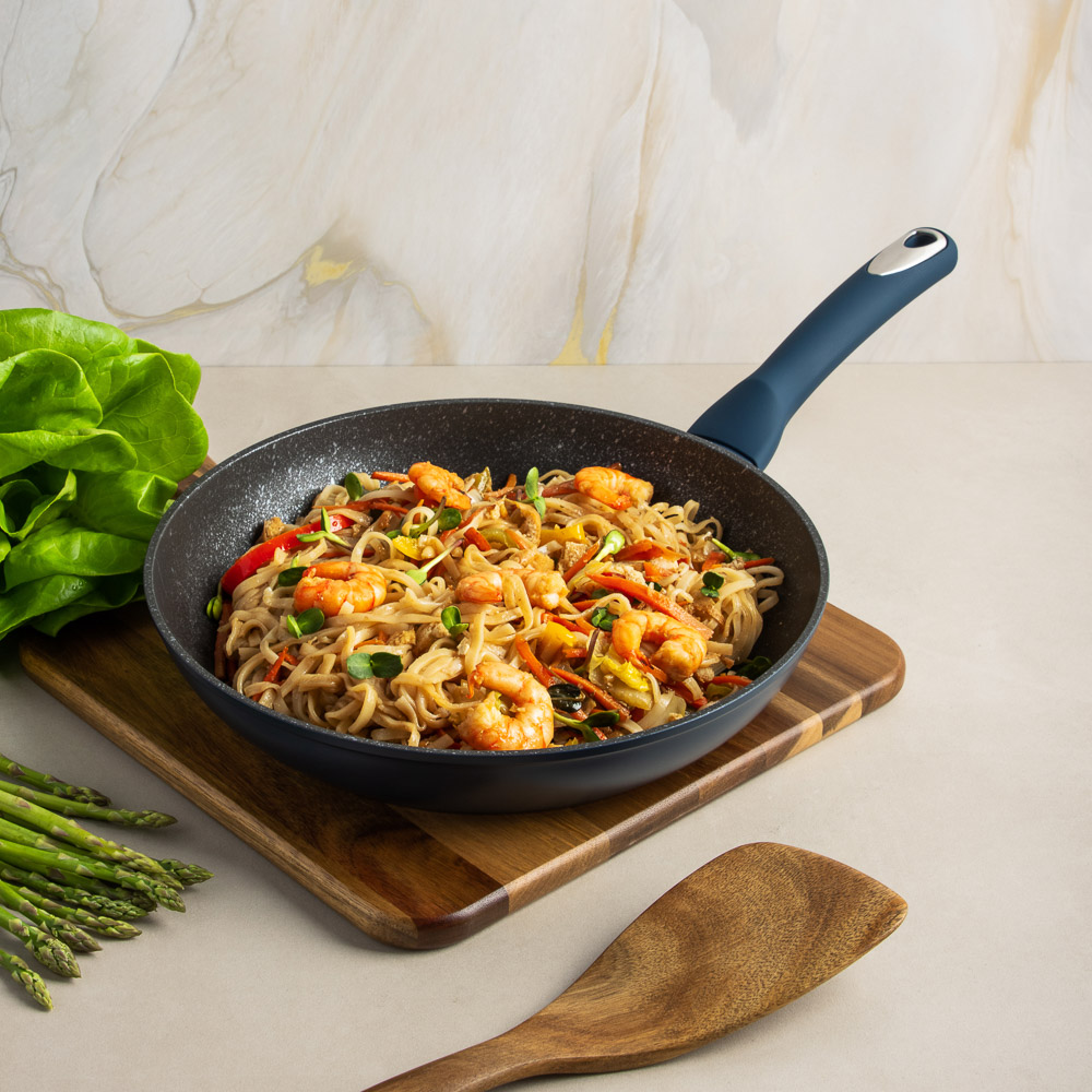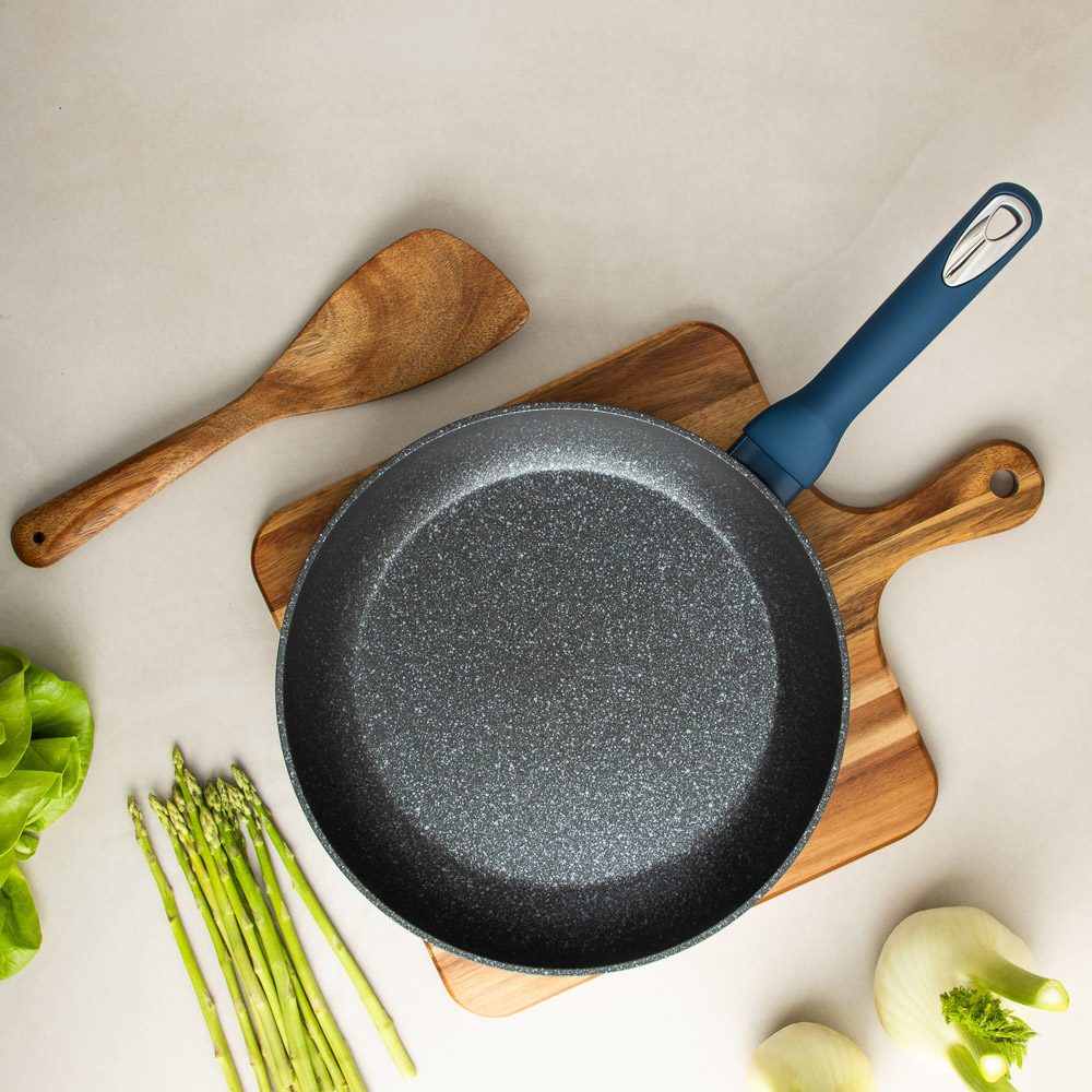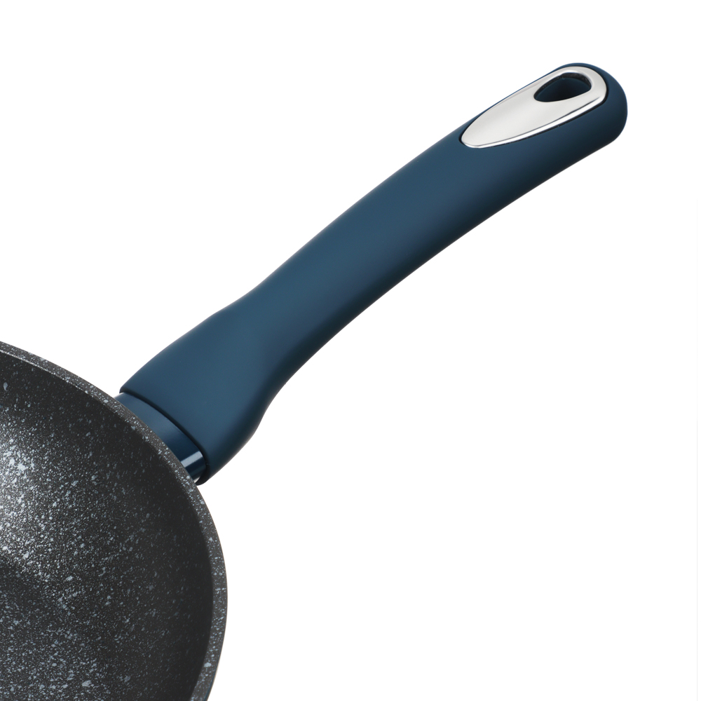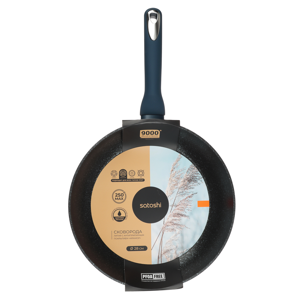 Большая и стильная литая сковорода SATOSHI Ривьера диаметром 28 см станет вашим незаменимым помощником на кухне! Ее глубокий синий цвет и эргономичная бакелитовая ручка с покрытием софт-тач добавят яркости и комфорта в процесс готовки. Многослойное антипригарное покрытие Pfluon с мраморным эффектом гарантирует легкое приготовление и чистку, выдерживая до 9000 циклов истирания. Сковорода подходит для всех типов плит, включая индукционные, и выдерживает температуру до 250°С. Удобное отверстие в ручке позволяет легко подвесить сковороду для хранения. Готовьте с удовольствием и наслаждайтесь безупречным результатом!