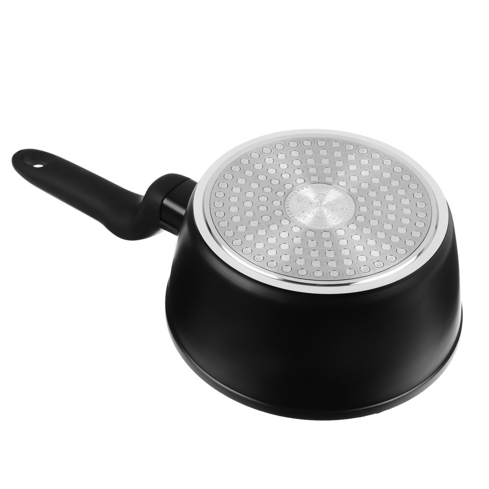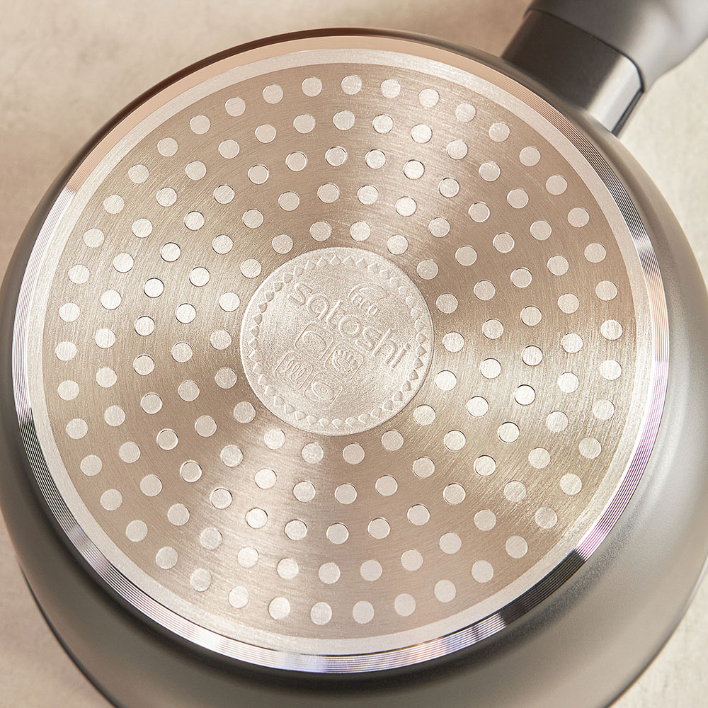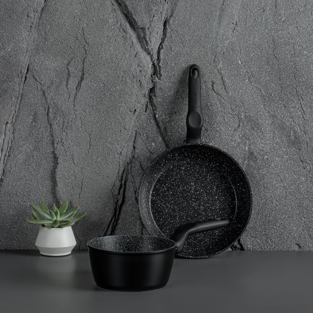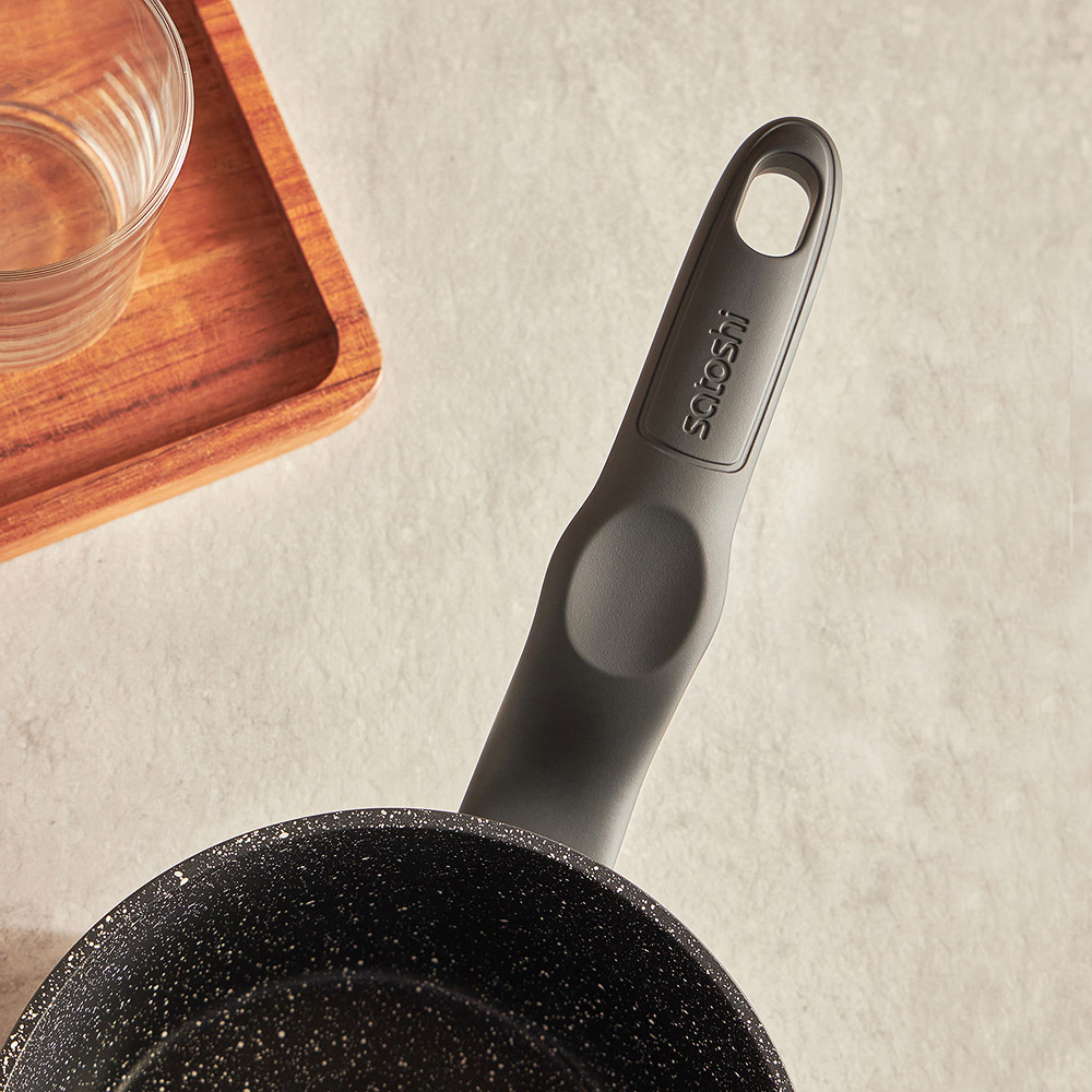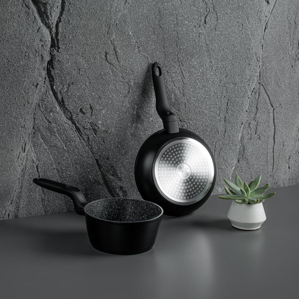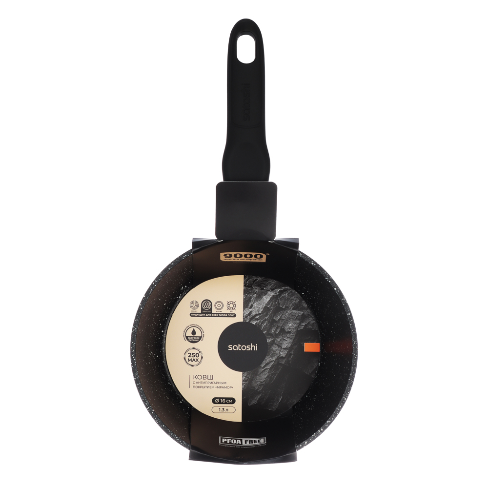 Ковш SATOSHI "Стоун" объемом 1,3 л станет вашей любимой посудой. В такой посуде можно готовить пищу любым способом: варить, жарить, тушить. Стойкое антипригарное покрытие под мрамор не позволяет пище пригорать, а литой алюминий обеспечивает равномерное приготовление блюд. Ковш SATOSHI "Стоун" подходит для использования на всех видах плит, в том числе и на индукции. Такую посуду можно мыть в посудомоечной машине и хранить вертикальном положении, благодаря петле на ручке. Ручки посуды серии "Стоун" имеют эргономичную изогнутую форму с углублением под большой палец, выполнены из бакелита с силиконовым напылением, поэтому не выскользнут из рук во время готовки.