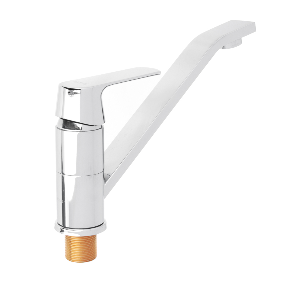 Однорычажный длинный смеситель для кухни с плоским изливом устанавливается на стену раковину с помощью горизонтальных креплений. Керамический картридж 40 мм позволяет регулировать напор воды одной рукой мягко и плавно, его конструкция обеспечивает прочность соединений и долговечность работы. Пластины из металлокерамики, отшлифованные ультразвуком, плотно прилегают друг к другу, механизм не содержит резиновых прокладок. Короткий гусак не мешает принимать ванну. В комплект включены: смеситель, комплект креплений. Смеситель отличается особой прочностью: корпус изготовлен из латуни с хромовым покрытием. Производитель дает гарантию 7 лет.