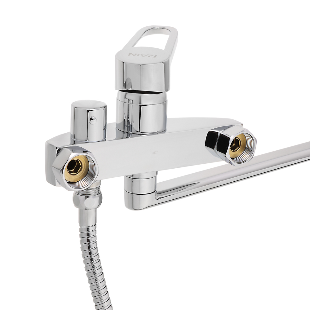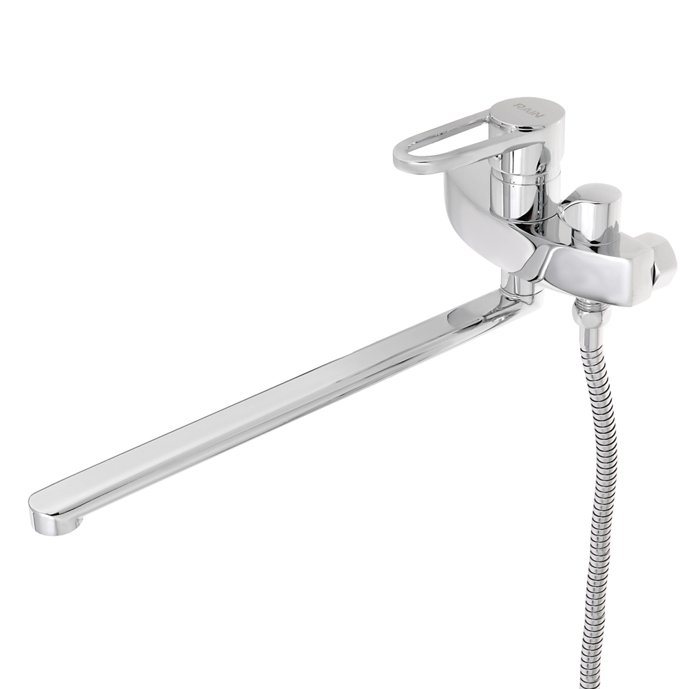 Смеситель для ванны Авантюрин от Rain - это смеситель с душевым набором. Однорычажный - удобно менять температуру и напор воды одной рукой. Смеситель с прямым изливом, длина 35 см - удобно набирать воду в тазы, ведра и другие емкости. Картридж 35 мм работает тихо и плавно. Смеситель латунный. Латунь устойчива к окислению, не портится от резких перепадов температуры воды. Смеситель служит долго и надежно. Покрытие - хром. Лейка душа с переключателем режимов работы. Держатель для душа в комплекте. Крепится на стену.