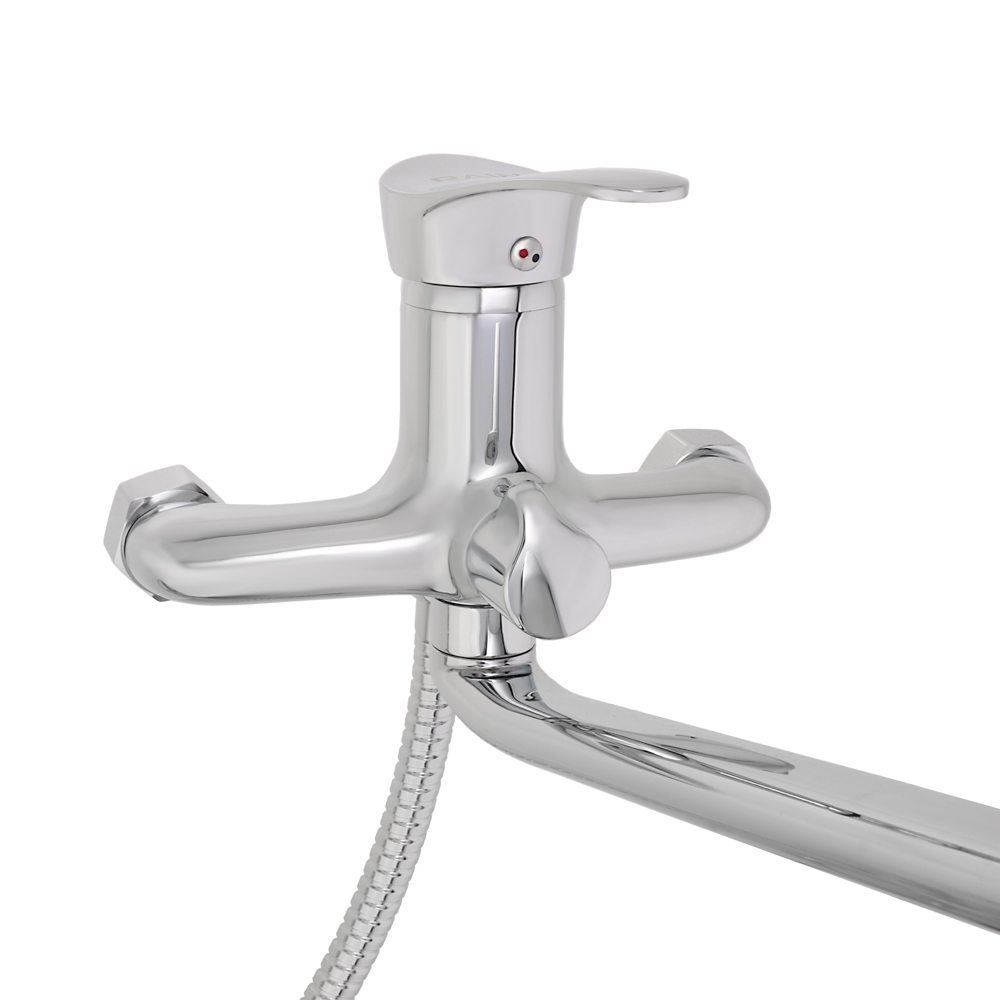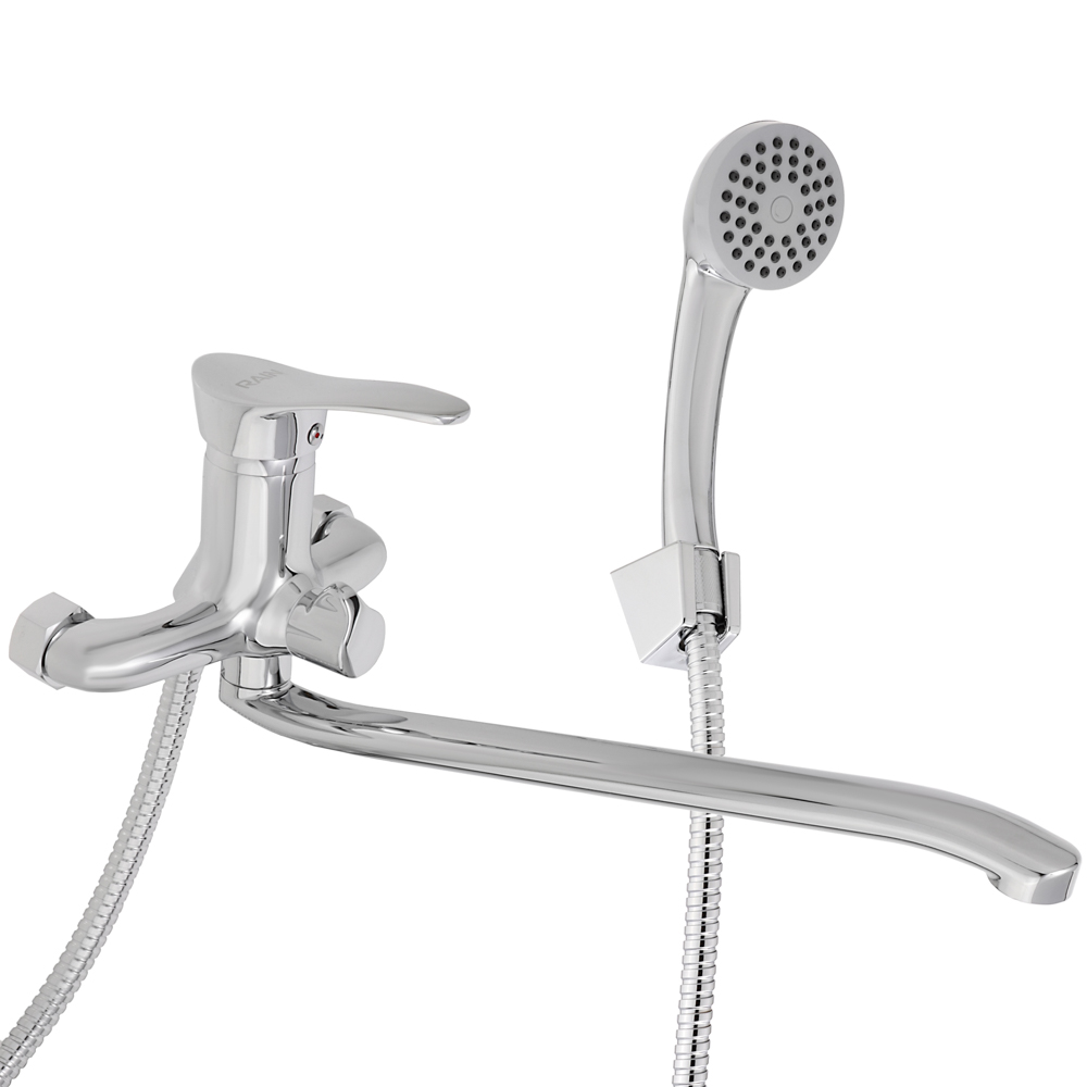 Смеситель для ванны RAIN Мира с изогнутым изливом длиной 35 см — это стильное и удобное решение для вашей ванной комнаты. Однорычажное управление позволяет легко контролировать температуру и напор воды. Корпус смесителя выполнен из долговечной латуни, а керамический картридж диаметром 35 мм обеспечивает надежную работу и защиту от протечек. Изогнутый излив идеально подходит для комфортного использования, а длина 35 см дает дополнительное удобство. В комплекте идет душевой набор с лейкой, которая имеет 3 режима работы, шланг длиной 150 см и держатель лейки для удобного хранения.
