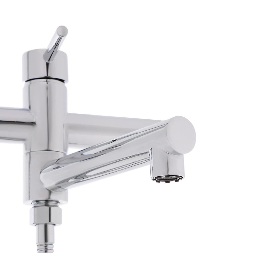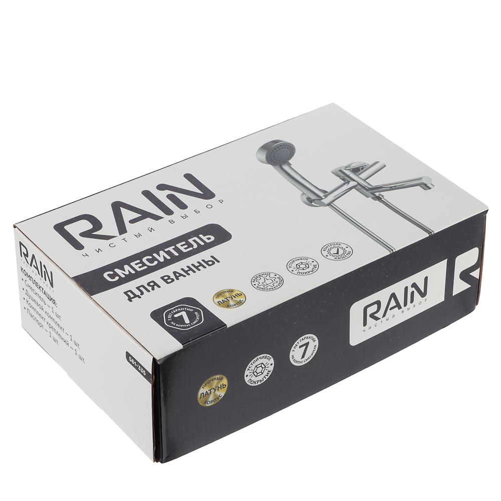 Смеситель для ванны RAIN однорычажного типа с прямым поворотным изливом 18 см и душевым набором (душевая лейка с 3-мя режимами работы + гибкий шланг) – это высококачественный сантехнический прибор для современной ванной комнаты. Корпус изготовлен из прочной латуни с глянцевым стойким хромированным покрытием серебристого цвета, которое эффективно защищает смеситель от коррозии. Универсальный дизайн подойдет для классических и современных интерьеров, а надежная конструкция с качественными комплектующими обеспечит долгий срок службы. Керамический картридж 25 мм гарантирует плавную регулировку температуры и напора воды без протечек. Гарантия – 7 лет.