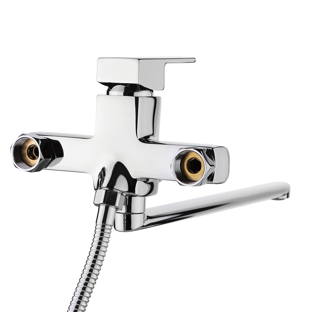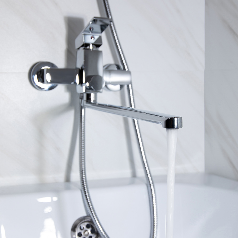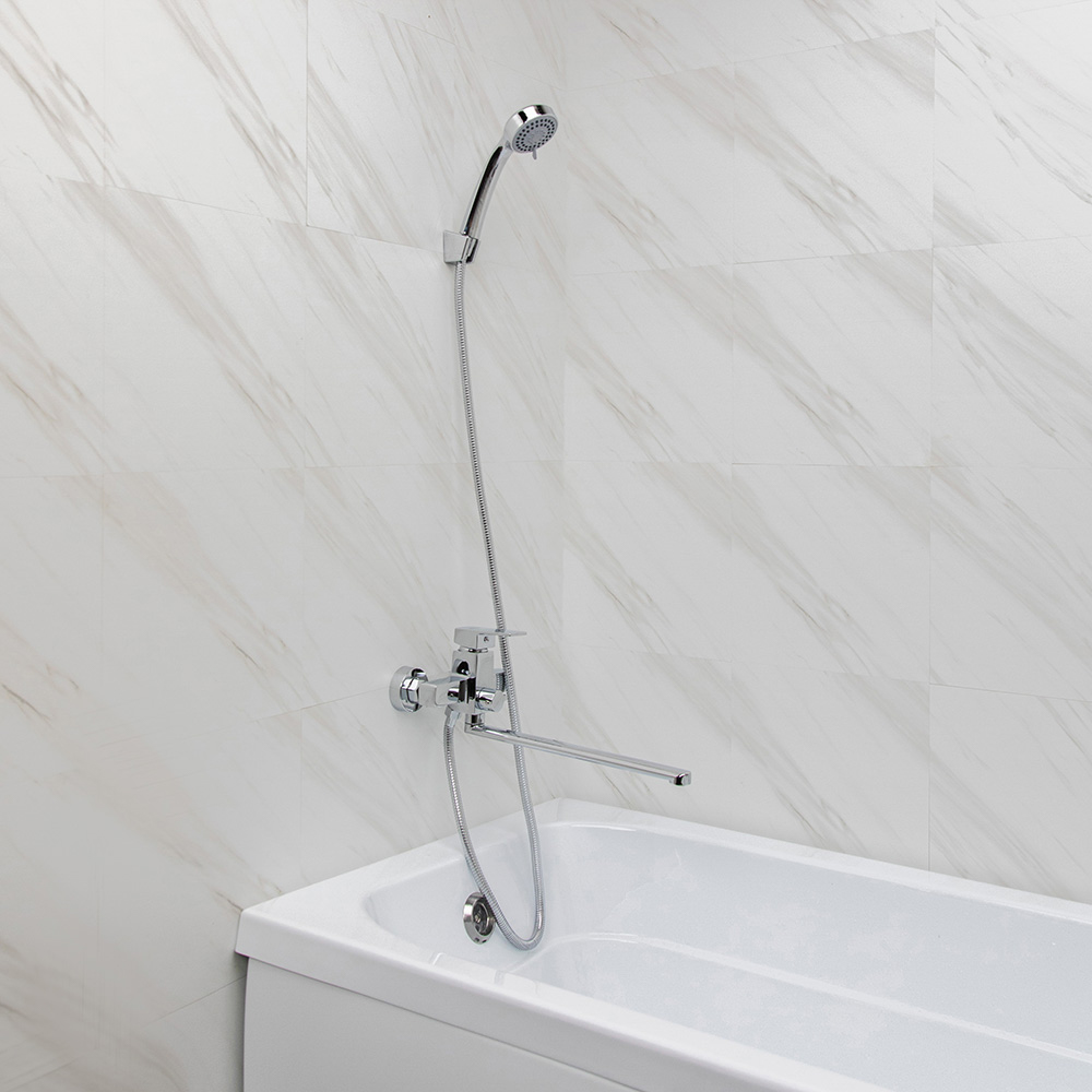 Смеситель для ванны RAIN Цитрин с прямым изливом длиной 30 см, душевым набором и картриджем 35 мм изготовлен из прочной и долговечной латуни с хромированным покрытием.Прямой излив обеспечивает равномерную и стабильную струю воды, что особенно важно при наполнении ванны или других крупных емкостей. Длина излива 30 см позволяет использовать смеситель с различными типами ванн, не создавая неудобств при использовании.Душевой набор включает в себя лейку, шланг и держатель для лейки, что позволяет легко переключаться между разными режимами использования воды. Картридж диаметром 35 мм обеспечивает точную и плавную регулировку температуры и напора воды, предотвращая появление шума и известковых отложений.
