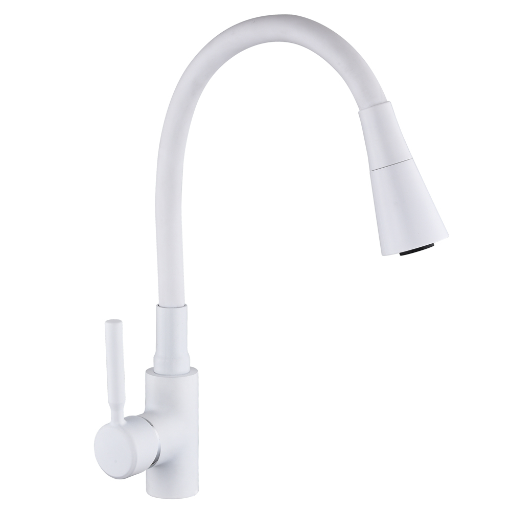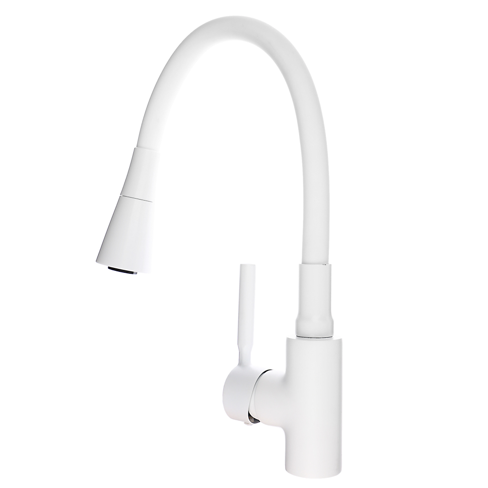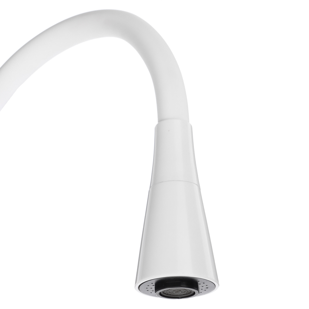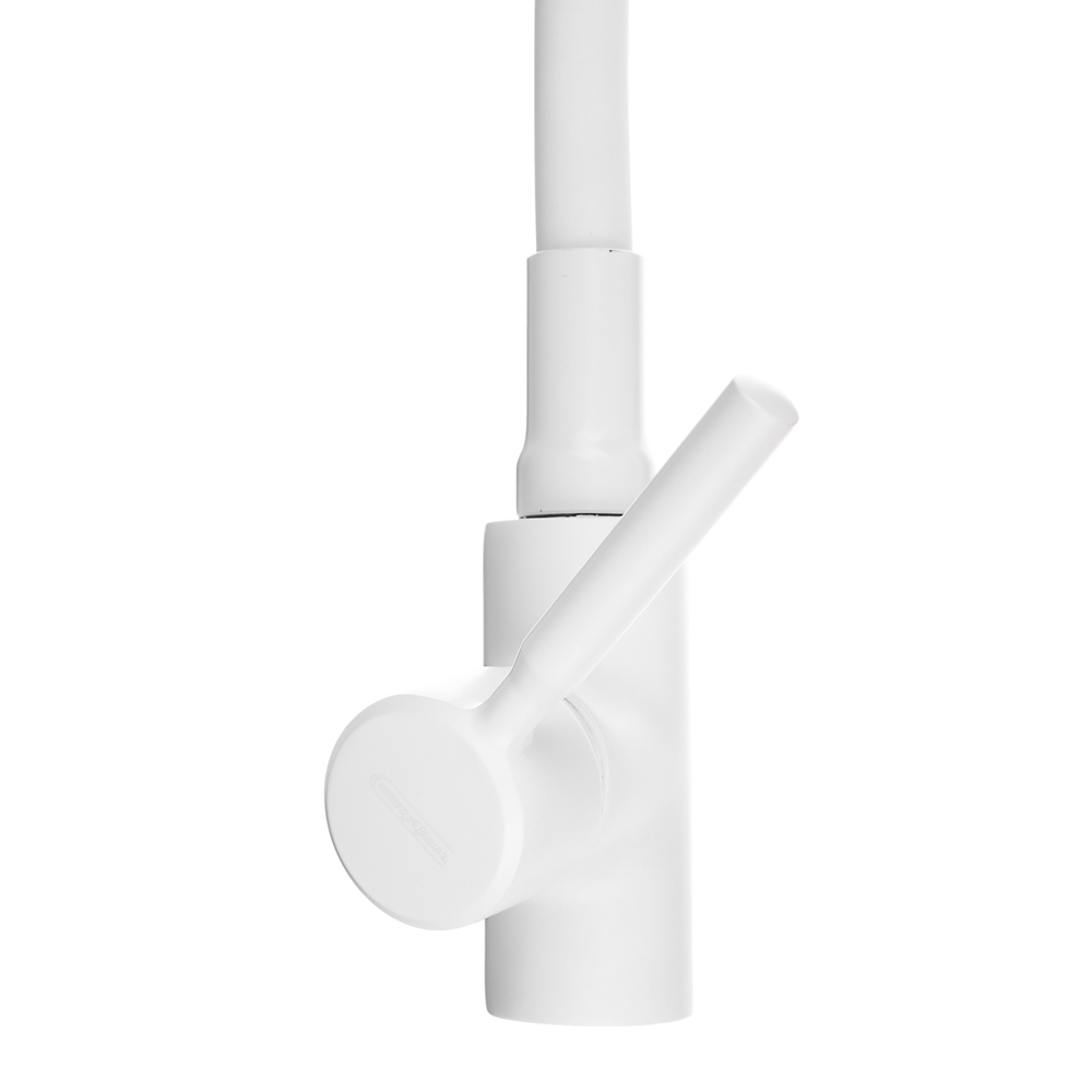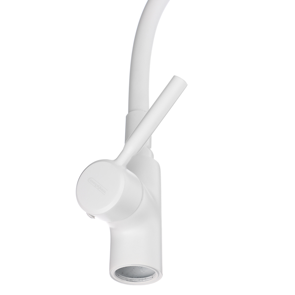 Смеситель для кухни СоюзКран SK01-F132 с гибким изливом в белом цвете – эстетичный сантехнический прибор, который дополнит интерьер современной кухни. Имеет лаконичный и минималистичный дизайн, отличается удобной конструкцией с боковым расположением рычага регулировки. Выполнен из цинкового сплава с износостойким антикоррозионным покрытием, которое значительно продлевает ресурс службы изделия. Керамический картридж 35 мм не подвержен износу и поломкам. Гибкий излив обеспечивает максимальный комфорт во время эксплуатации.