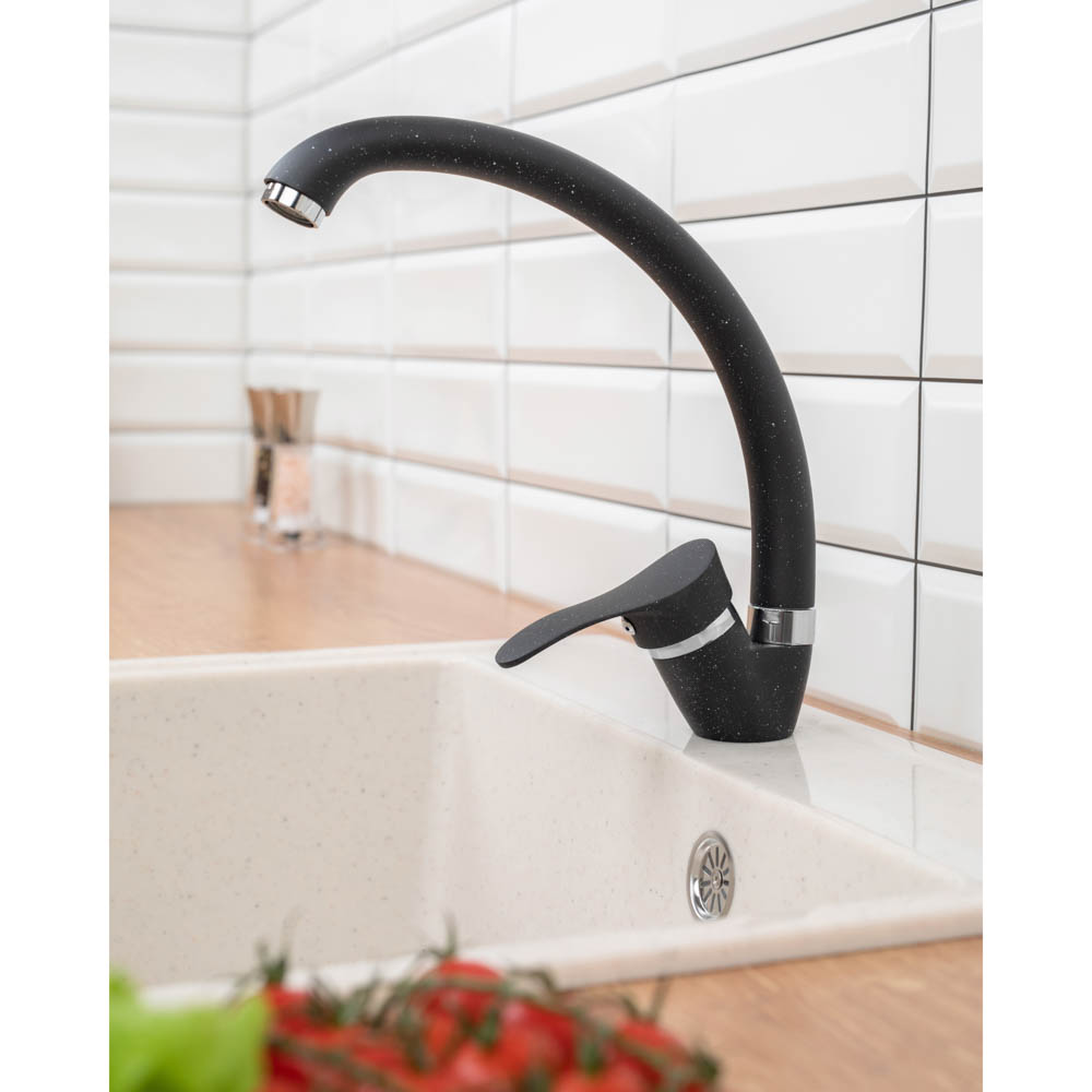 Кухонный смеситель с высоким изливом, длиной 25 см и керамическим картриджем 35 мм в черном цвете станет стильным и функциональным дополнением вашей кухни. Благодаря высокому расположению излива, вам будет легко наполнять кастрюли и мыть посуду, а керамический картридж обеспечит плавную и надежную регулировку температуры воды. В комплекте со смесителем идут все необходимые для установки аксессуары. Этот стильный и качественный смеситель будет служить вам долгие годы и гармонично впишется в современный интерьер кухни.