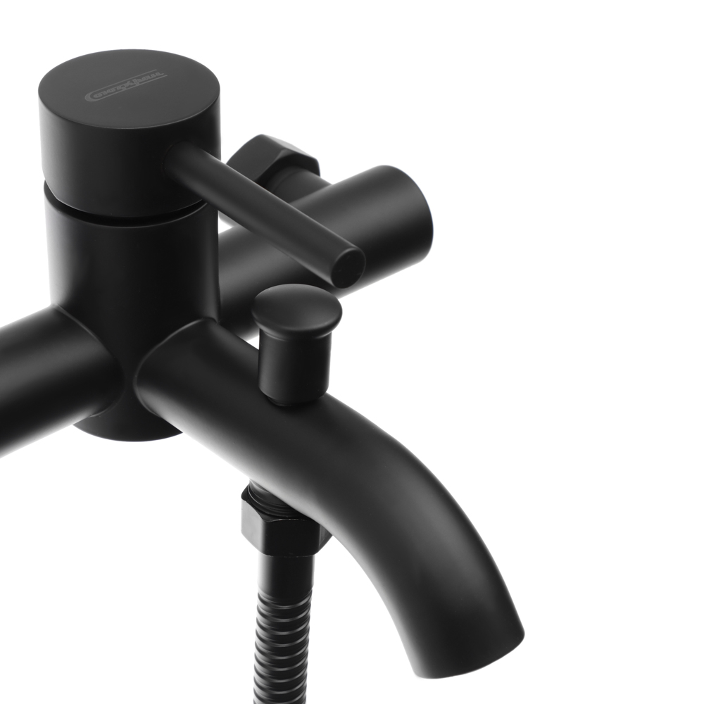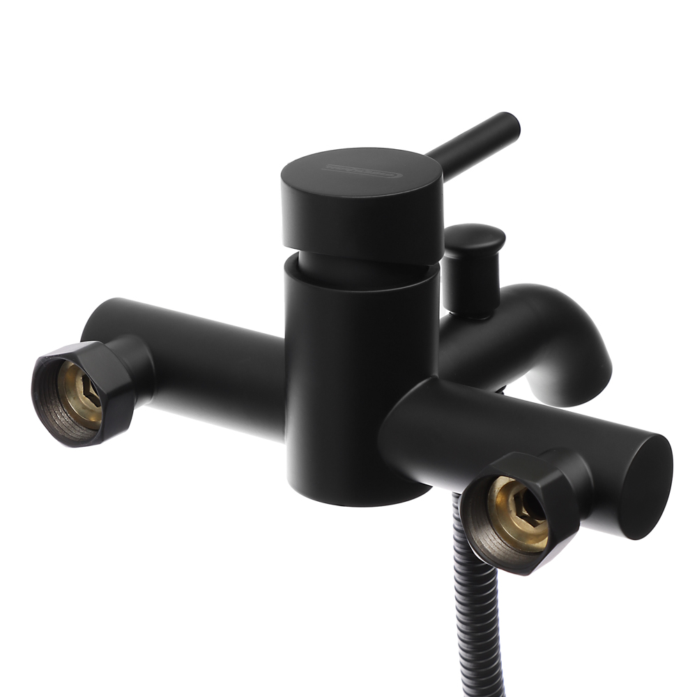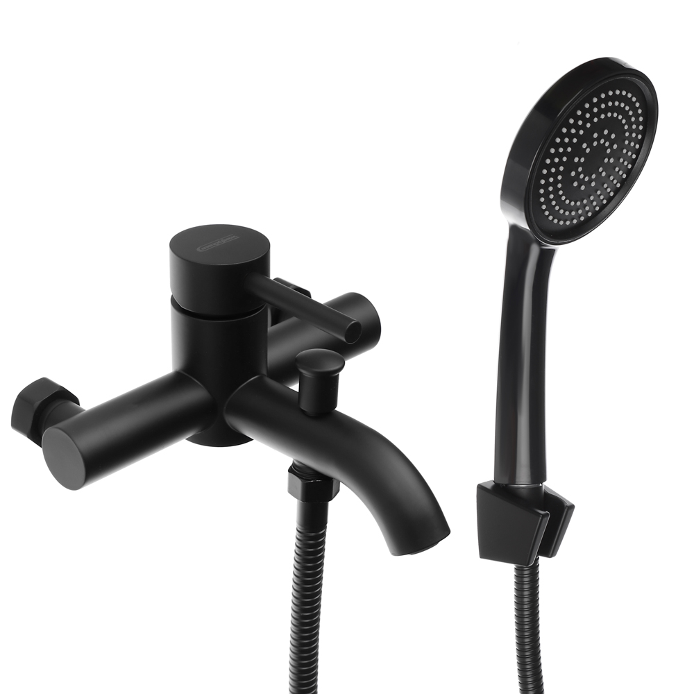 Смеситель для ванны СоюзКран с душем идеально подойдет для современных ванных комнат. Корпус выполнен из нержавеющей стали с черным покрытием, что придает изделию элегантный и стильный вид, устойчивый к царапинам и коррозии. Однорычажное управление и керамический картридж (35 мм) обеспечивают плавное и точное регулирование температуры и напора воды. Короткий излив и душевой комплект с лейкой на 1 режим и шлангом длиной 150 см делают этот смеситель удобным и функциональным. Надежное крепление с эксцентриками и держатель для лейки в комплекте позволяют легко установить изделие и наслаждаться комфортом при водных процедурах.