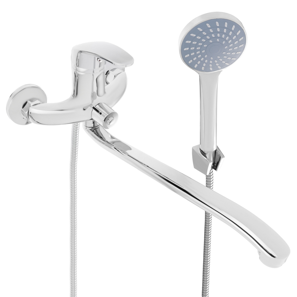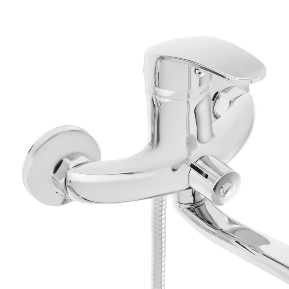 Смеситель для ванны с душем от бренда KLABB. Смеситель однорычажный: температуру и напор воды регулируют одной рукой. Это удобно, когда вы моете голову и принимаете душ. Керамический картридж 40 мм. Работает бесшумно и плавно. Дает большой напор воды - подходит, чтобы быстро наполнять большие ванны. Прямой излив длиной 35 см удобен, чтобы набирать воду в тазы, ведра и другие емкости. Душ с одним режимом работы. Крепится на стену, крепление для душа в комплекте. Покрытие смесителя и душа - хром. Смеситель из цинка: гарантийный срок службы 1 год.