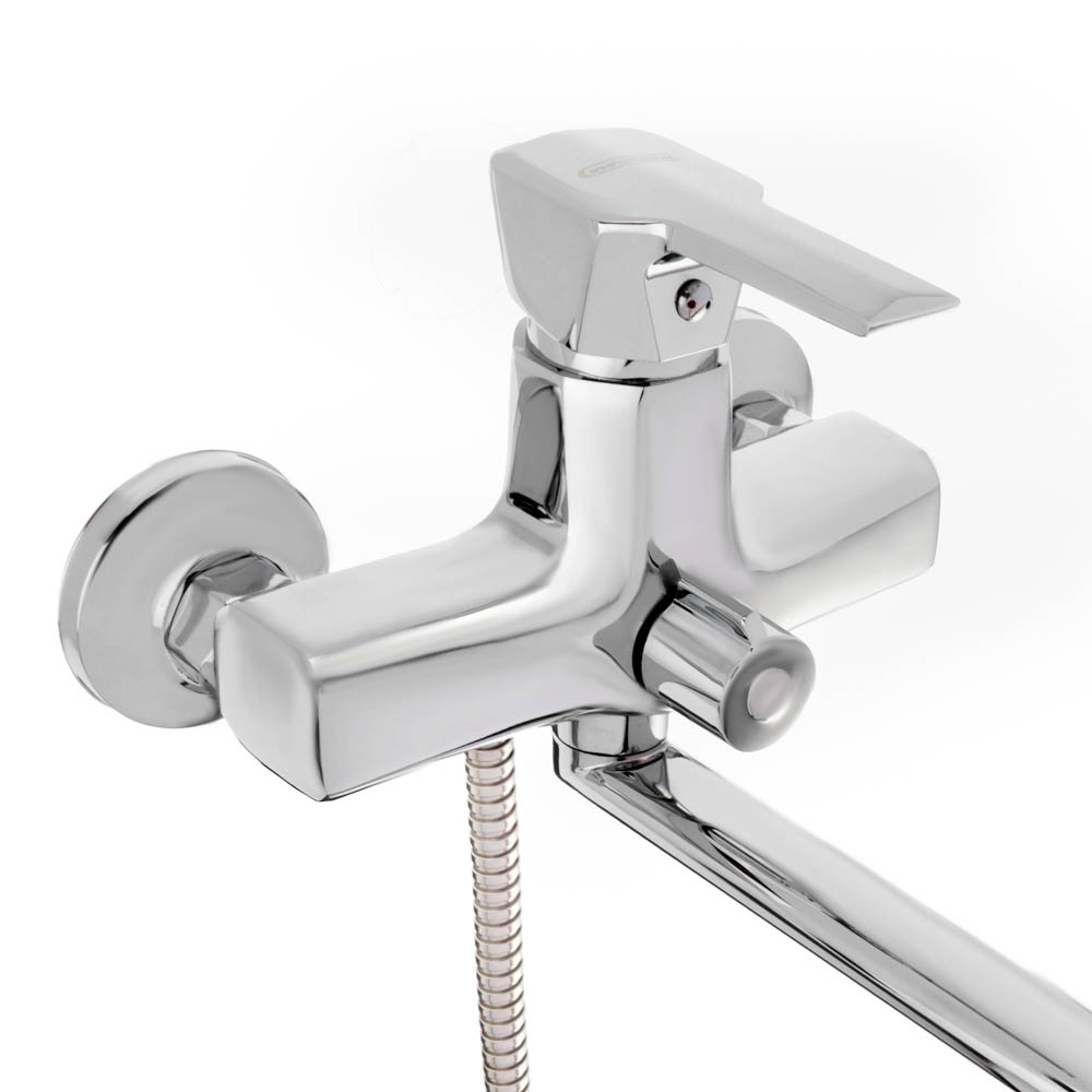 Смеситель для ванны с душем СоюзКран SK08-P134 изготовлен из цинкового сплава методом литья под давлением, что делает его надежным, прочным и долговечным. Усиленный корпус с толстыми стенками с покрытием хром обладает повышенной стойкостью к коррозии. Имеет прямой излив 35 см с поворотом 360 градусов и с керамическим картриджем, который облегчает регулировку напора и температуры воды. Аэратор не требует частой очистки, удобно крепится на держателе и имеет оптимальную длину шланга.