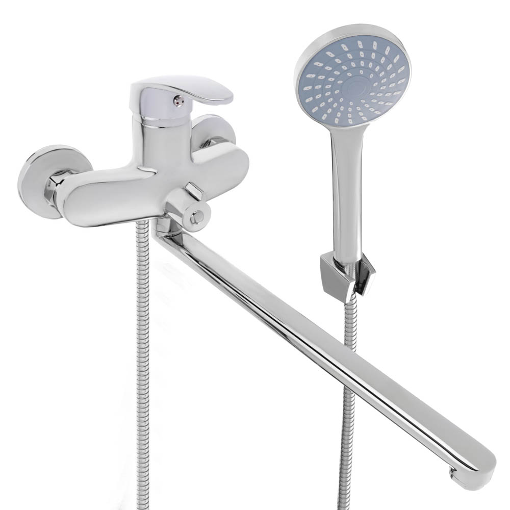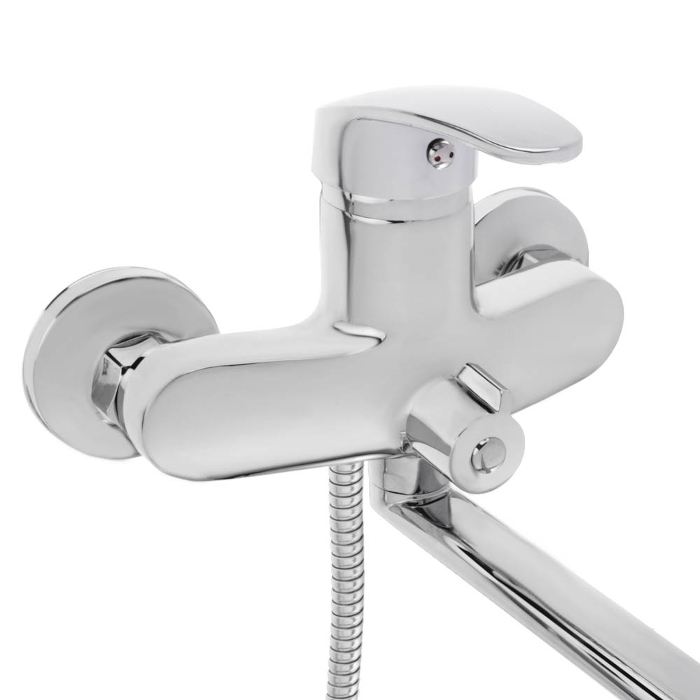 Надежный смеситель для ванны с душем СоюзКран SK08-P114 с прямым изливом 35 см и керамическим картриджем 40 мм изготовлен из цинкового сплава с высококачественным покрытием хром, которое значительно увеличивает срок эксплуатации изделия. Переключатель режимов душ-излив работает четко и безотказно, а поворотный излив плавно вращается, делая прием водных процедур приятным и комфортным. Душевой комплект включает лейку, гибкий шланг и держатель. Соединения не протекают, смеситель работает бесшумно даже при мощном напоре воды, а регулировка воды происходит плавно без применения усилий со стороны пользователя.
