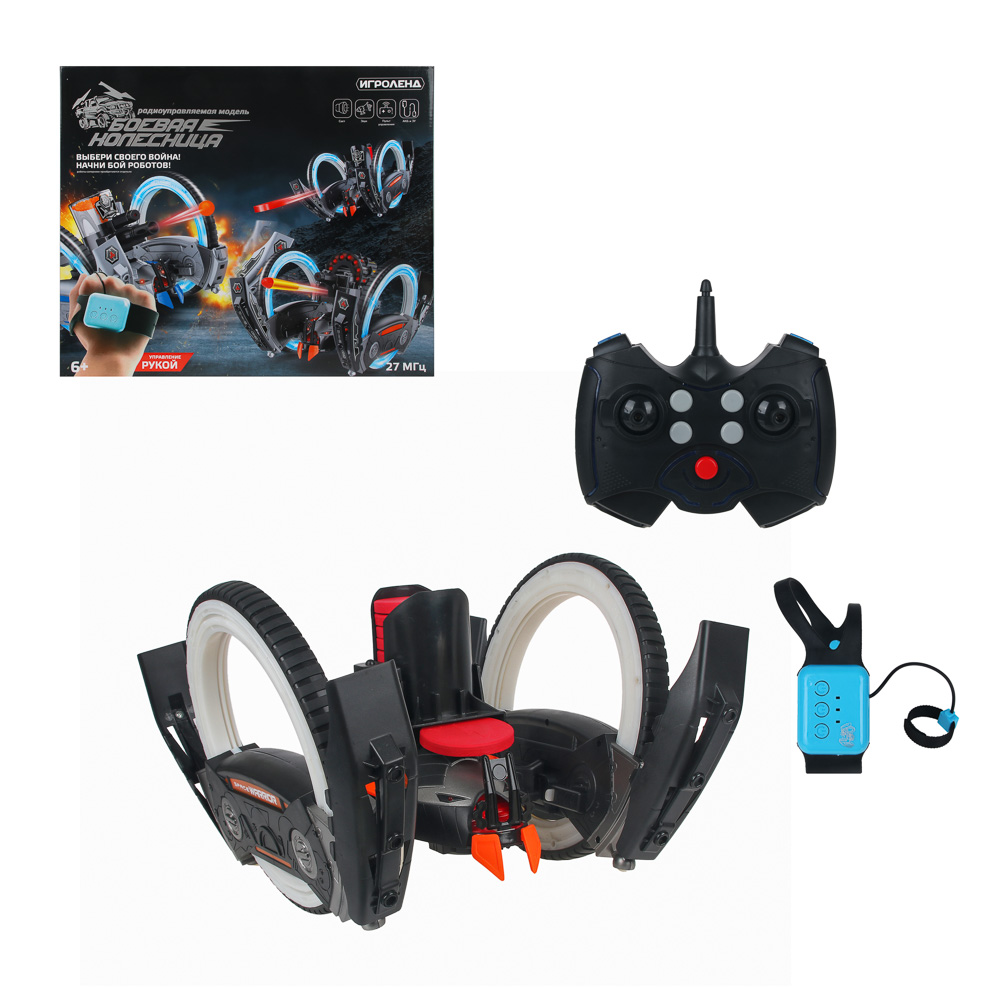 Всем приготовиться! Боевая колесница Игроленд на радиоуправлении вступает в бой! • Колесница оснащена боекомплектом в виде пластиковых пуль, а также имеет звуковые и световые спецэффекты. • Управляется с разных ПДУ, а также доступно управление рукой при помощи специального браслета. • Движется во всех направлениях и имеет съемные части брони. • Оснащена датчиком попадания, который позволит выявить победителя в финальной схватке! • Набор наклеек позволит создать своего уникального робота-воина. • АКБ, пульт и ЗУ имеются в комплекте. • Время зарядки – до 2,5 ч. Время игры – до 40 мин. Дальность управления – до 15 м. Внимание! Роботы соперники приобретаются отдельно. Игрушка станет неожиданным и ошеломительным подарком для мальчика.